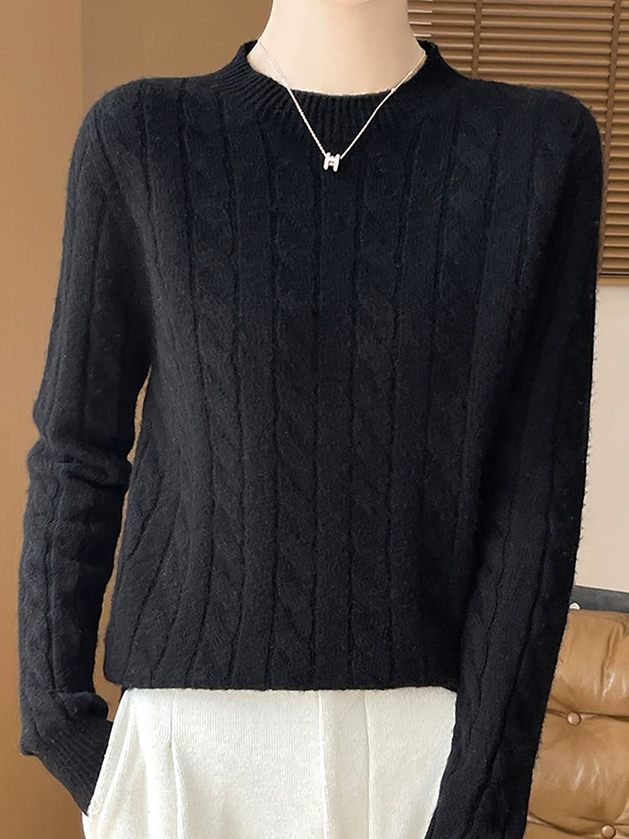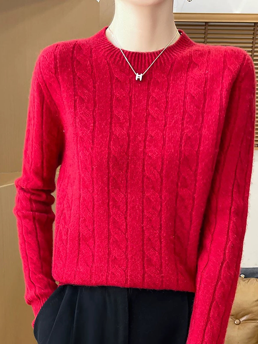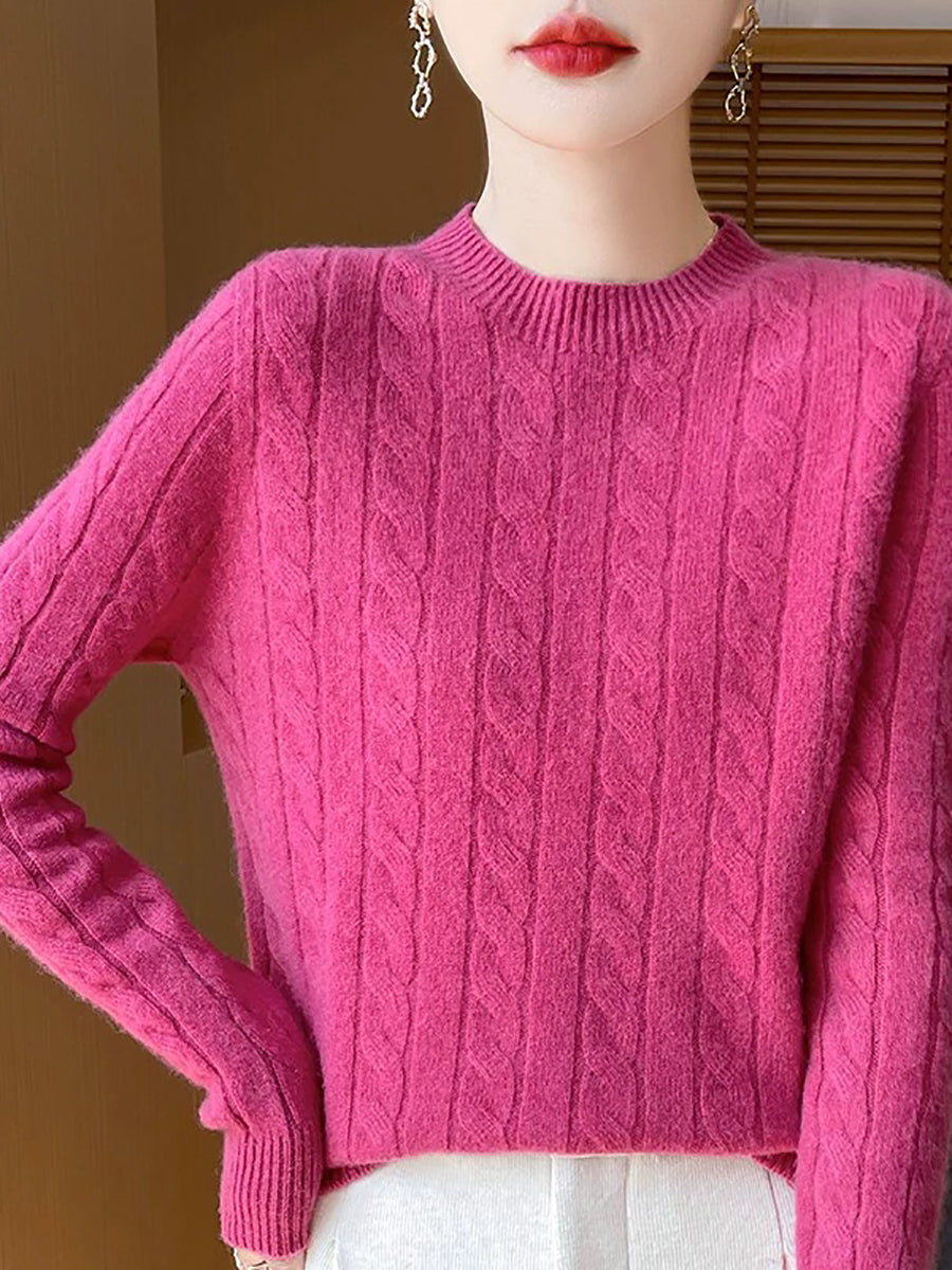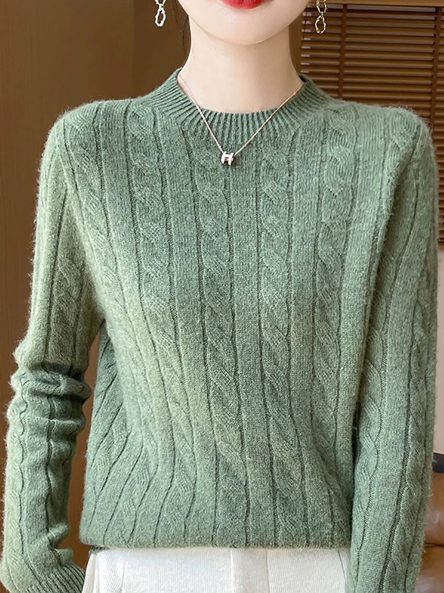 Maglione casual primaverile da donna con scollo rotondo lavorato a maglia a trecce