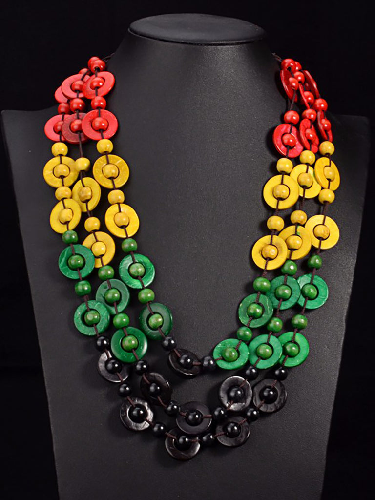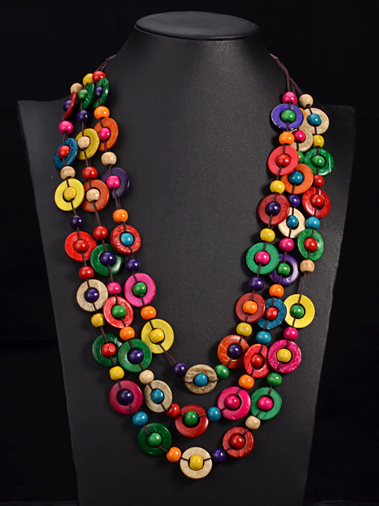 Collana etnica da donna in guscio di cocco colorato a tre strati