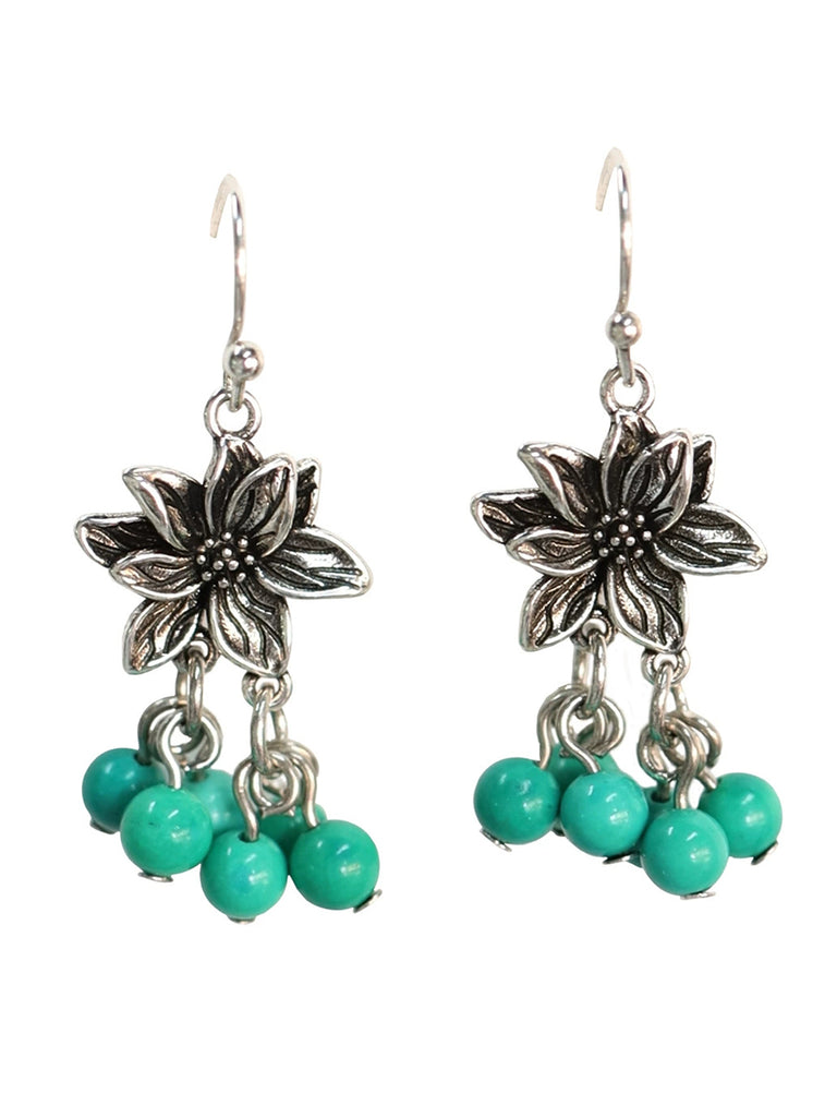 Orecchini da donna con nappe in lega etnica, perline di turchese e loto