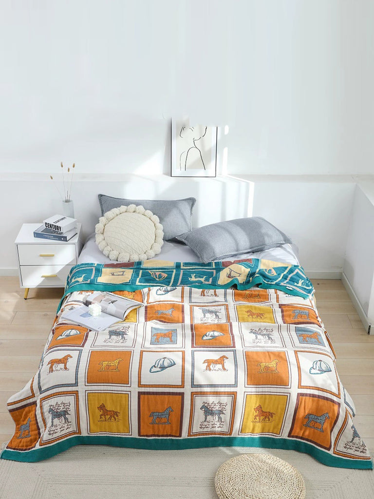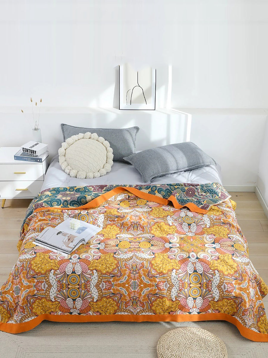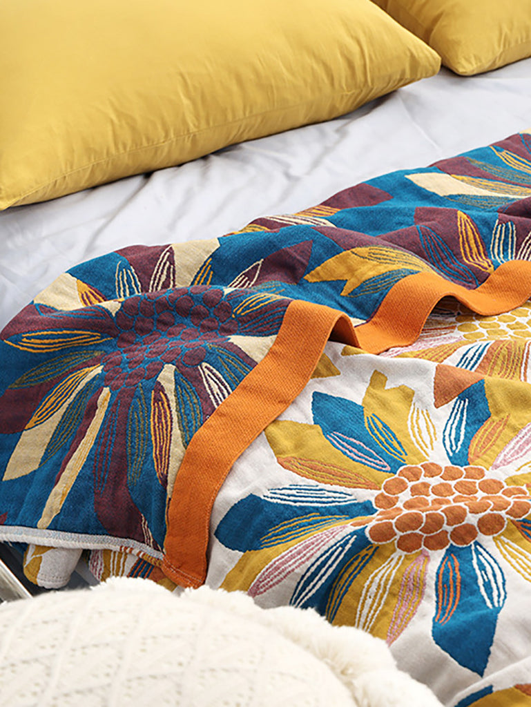 Copriletto per divano e coperta per adulti con fiori in 100% cotone