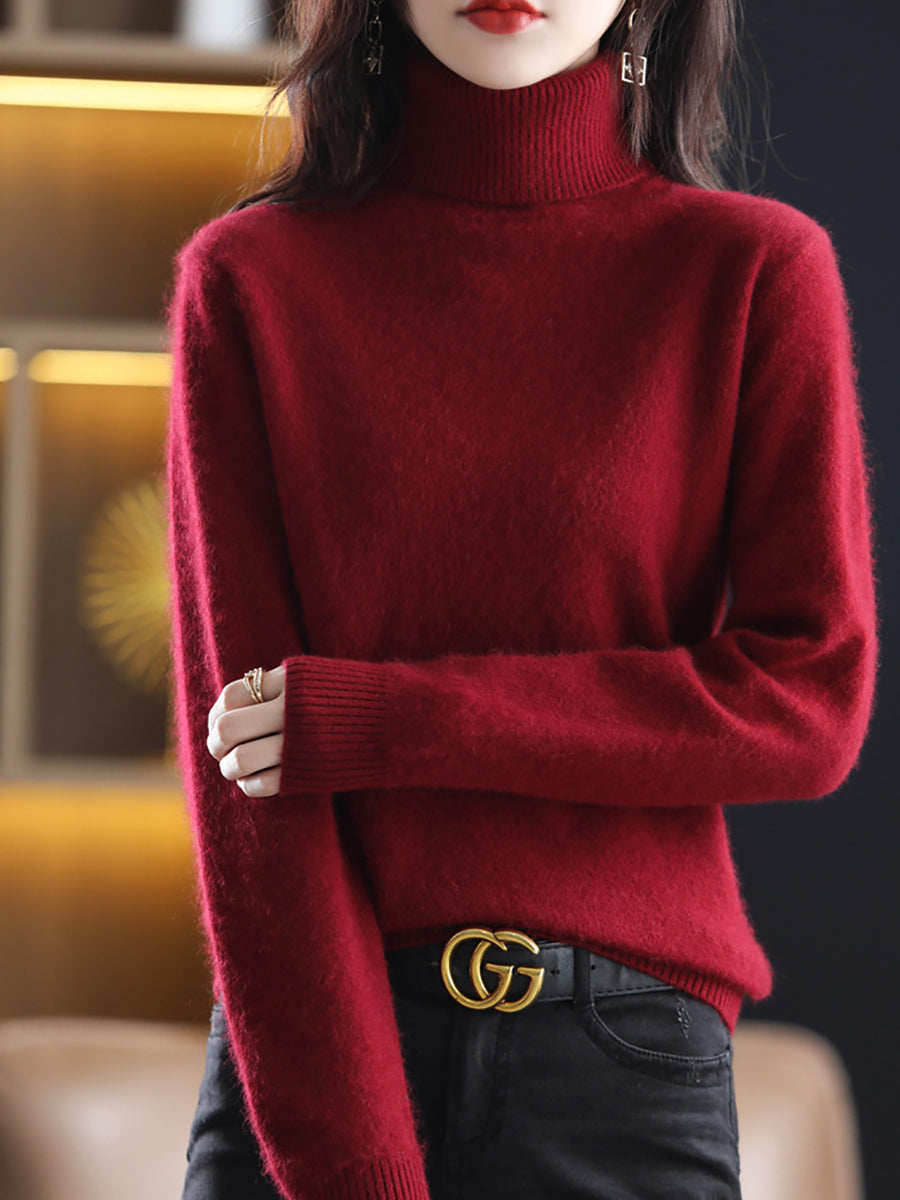 Maglione dolcevita casual primaverile da donna in tinta unita