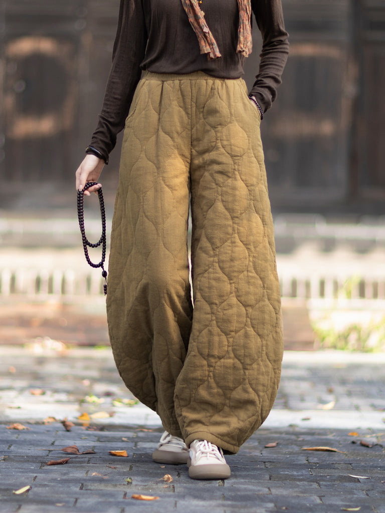 Pantaloni larghi imbottiti da donna invernali retrò in tinta unita