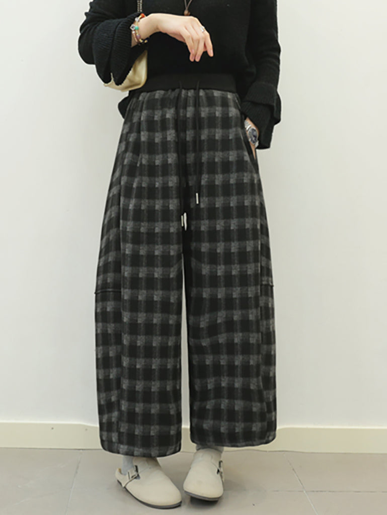 Pantaloni a gamba larga in stile retrò scozzese invernale da donna
