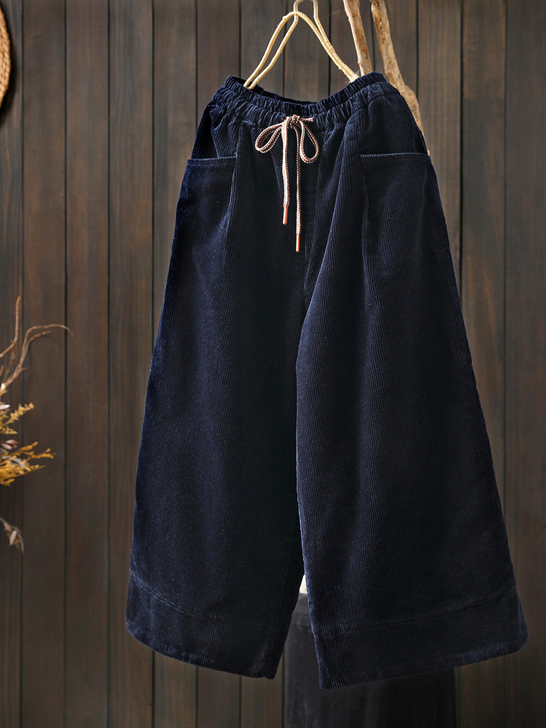 Pantaloni larghi imbottiti in velluto a coste retrò invernali da donna
