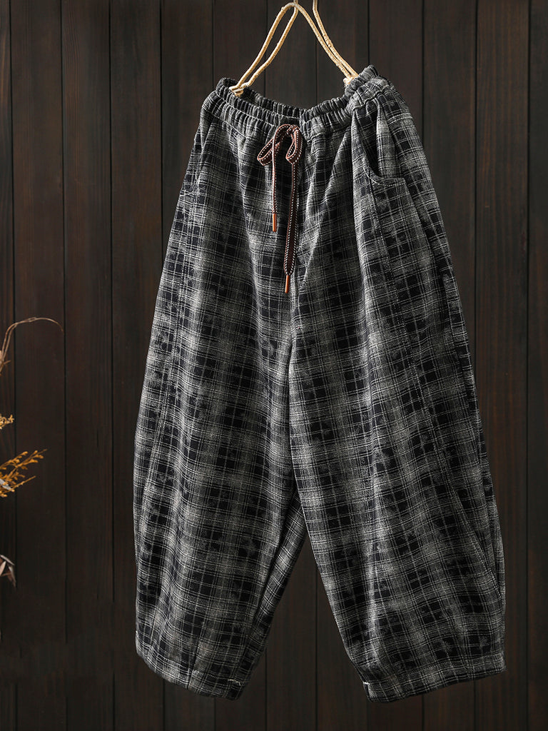 Pantaloni harem imbottiti invernali da donna in stile retrò scozzese