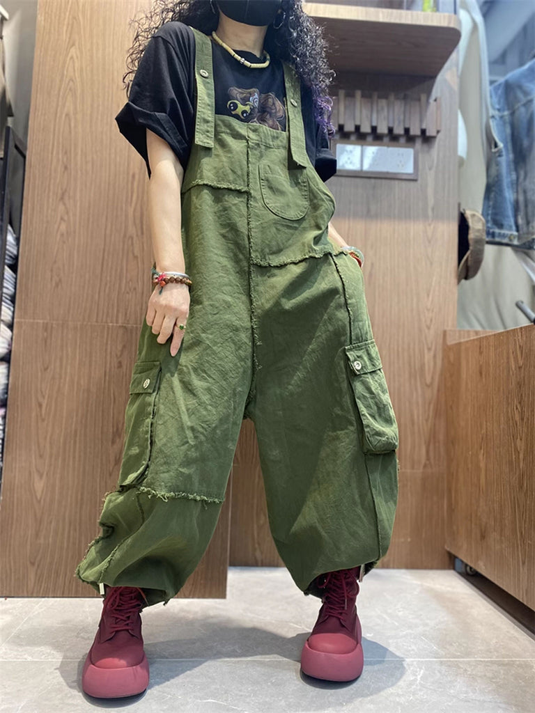 Tute larghe con bordi grezzi in cotone artistico primaverile da donna