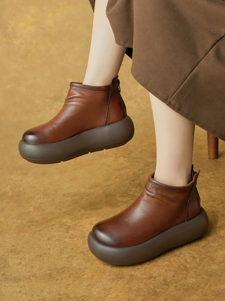 Stivali invernali casual da donna in pelle color puro con plateau