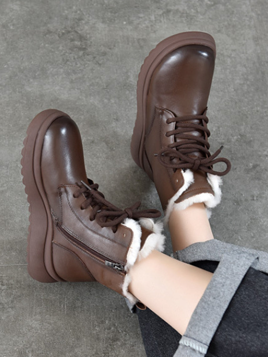 Stivali invernali da donna in vera pelle foderati in pile