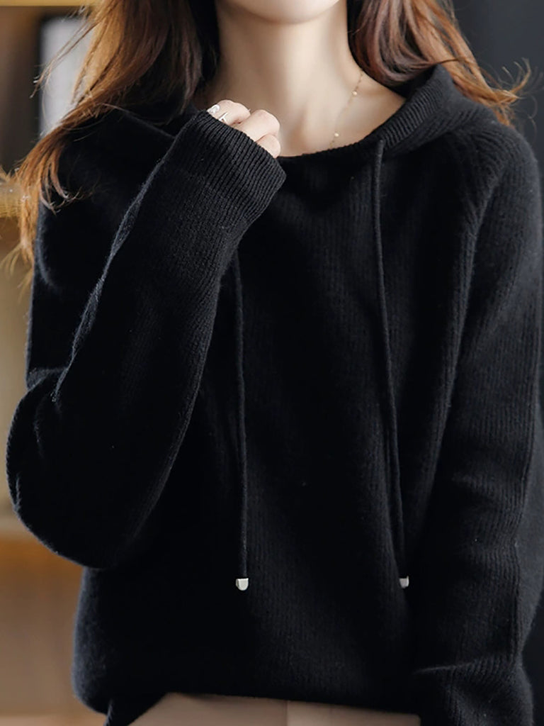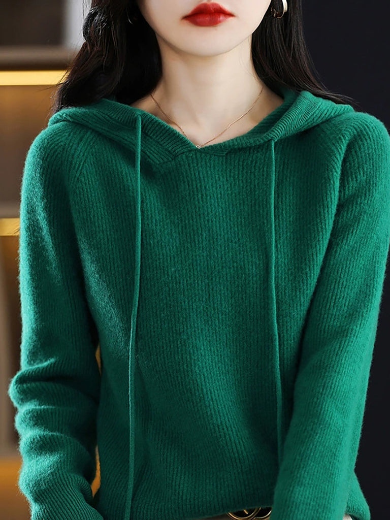 Maglione con cappuccio casual autunnale da donna, colore puro