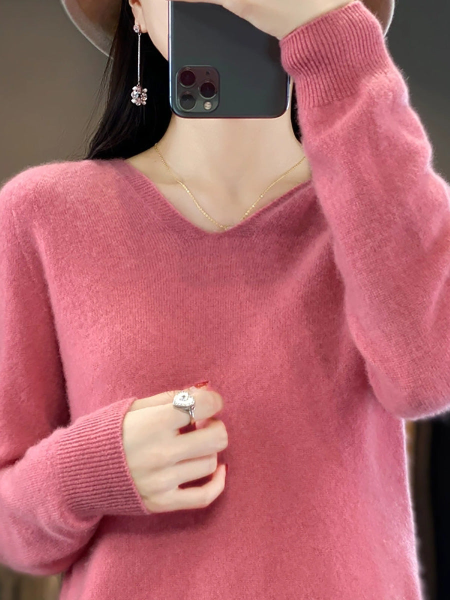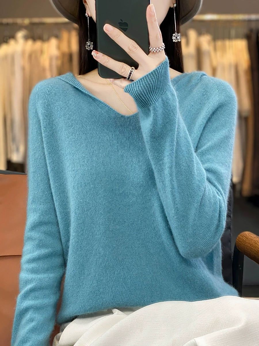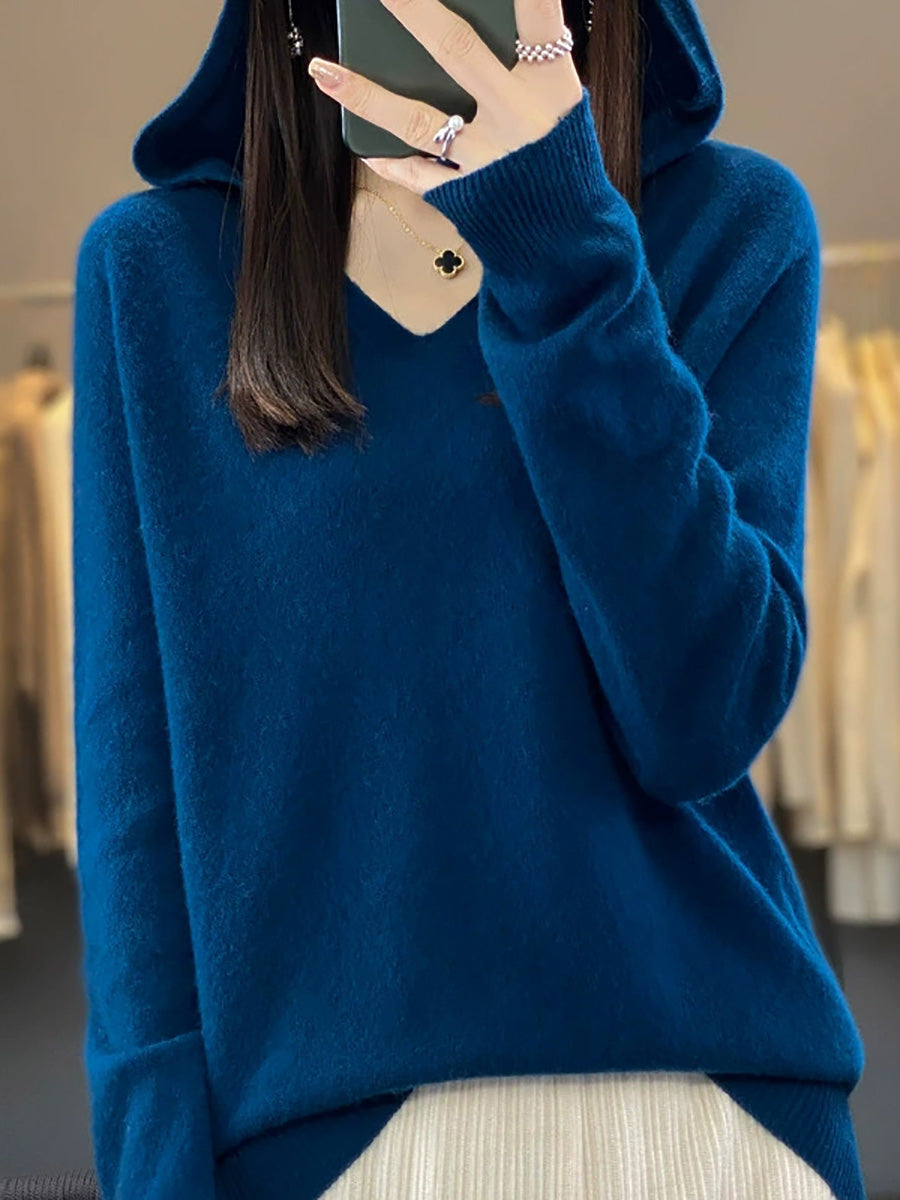 Maglione con cappuccio lavorato a maglia casual autunnale da donna, colore puro