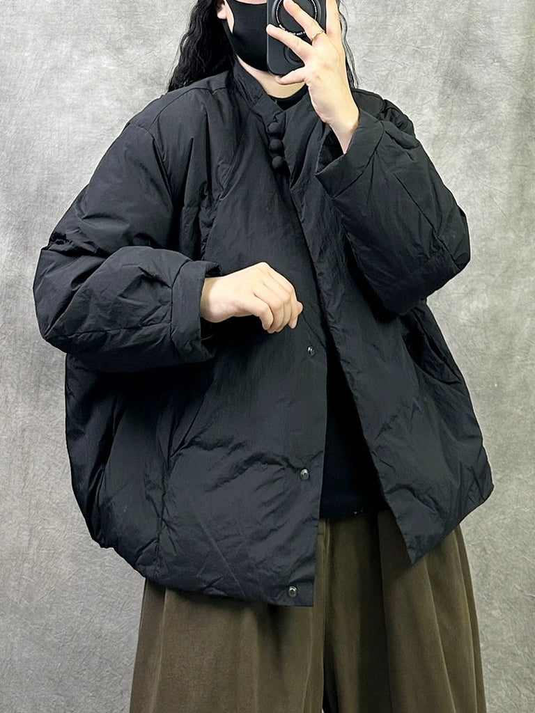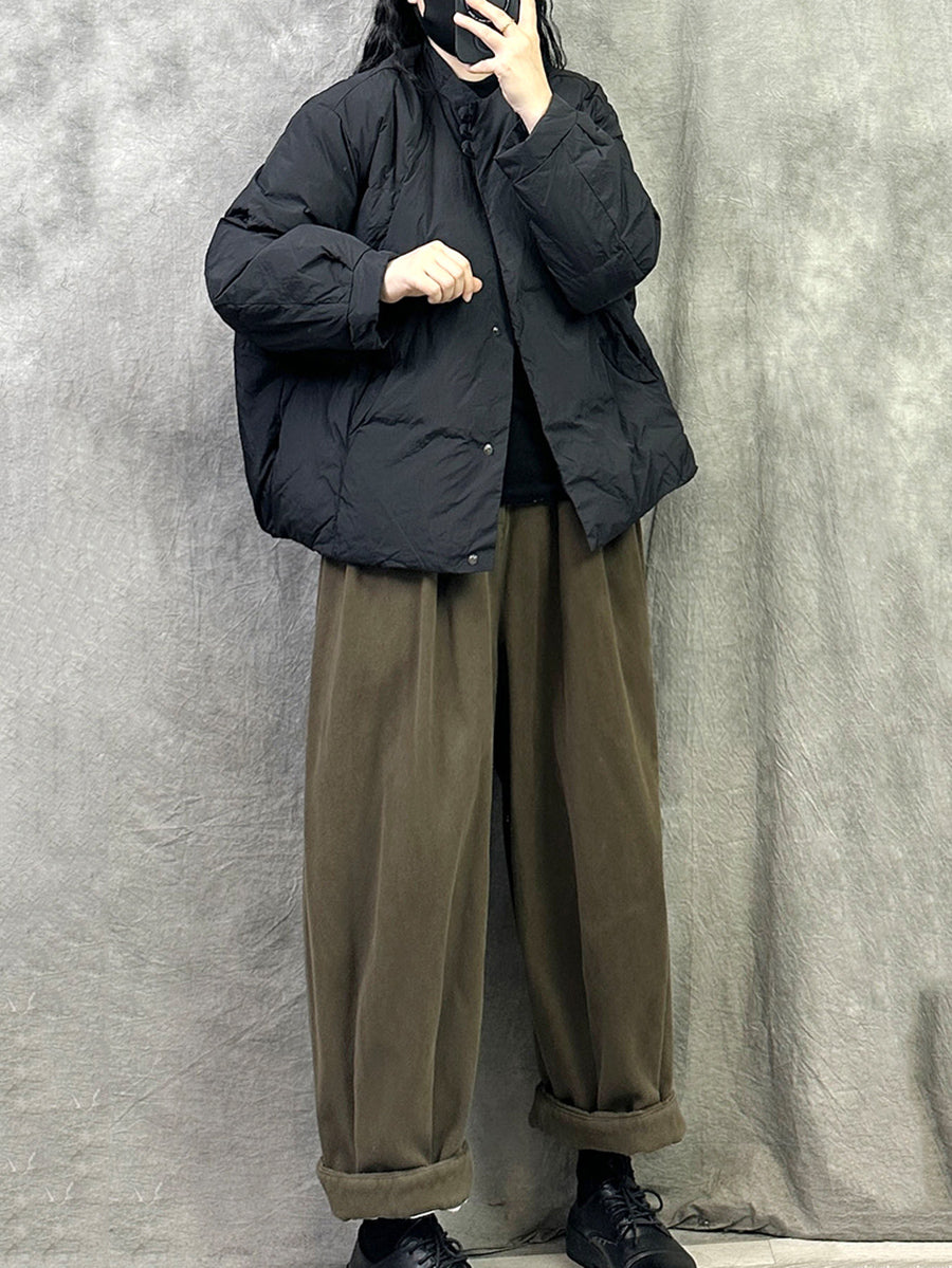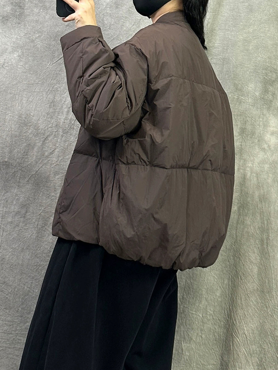 Cappotto imbottito casual invernale da donna con colletto rialzato, colore puro