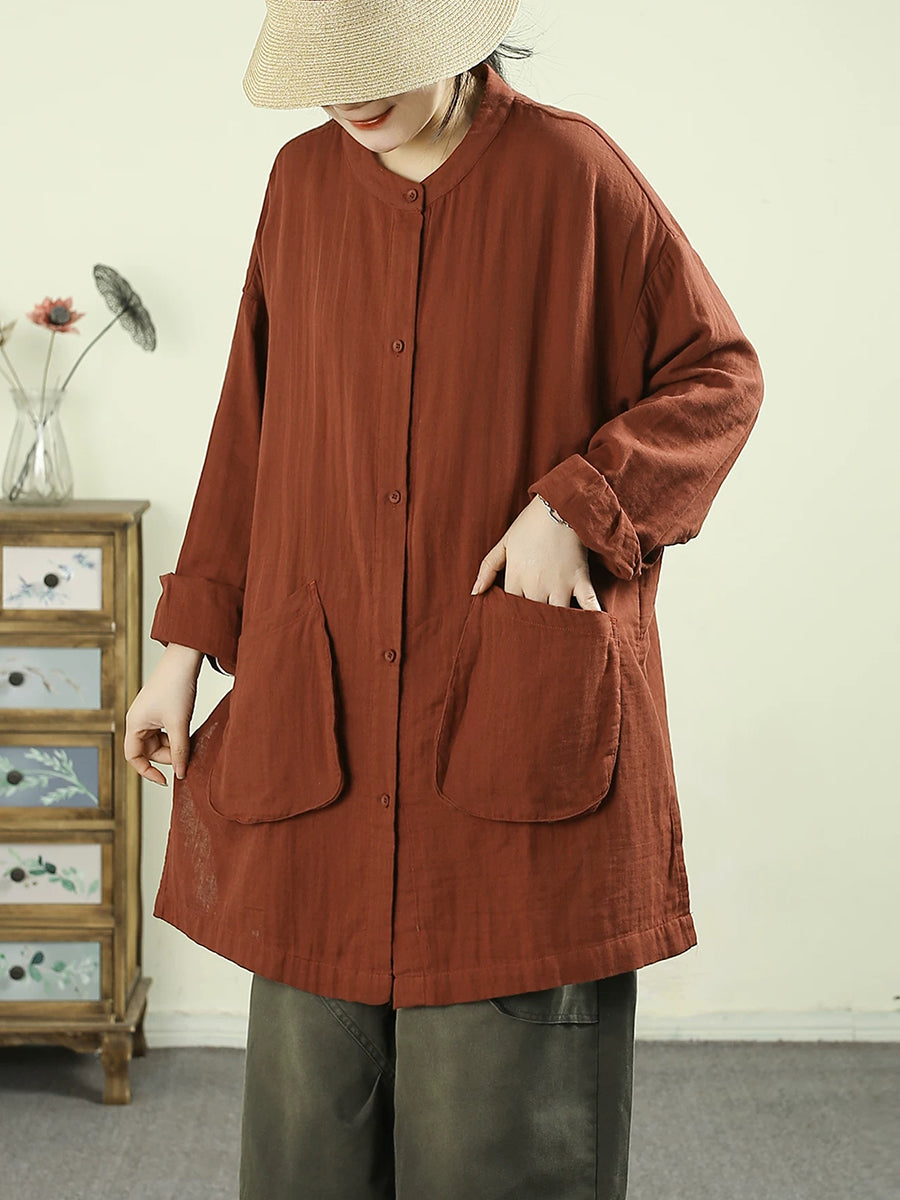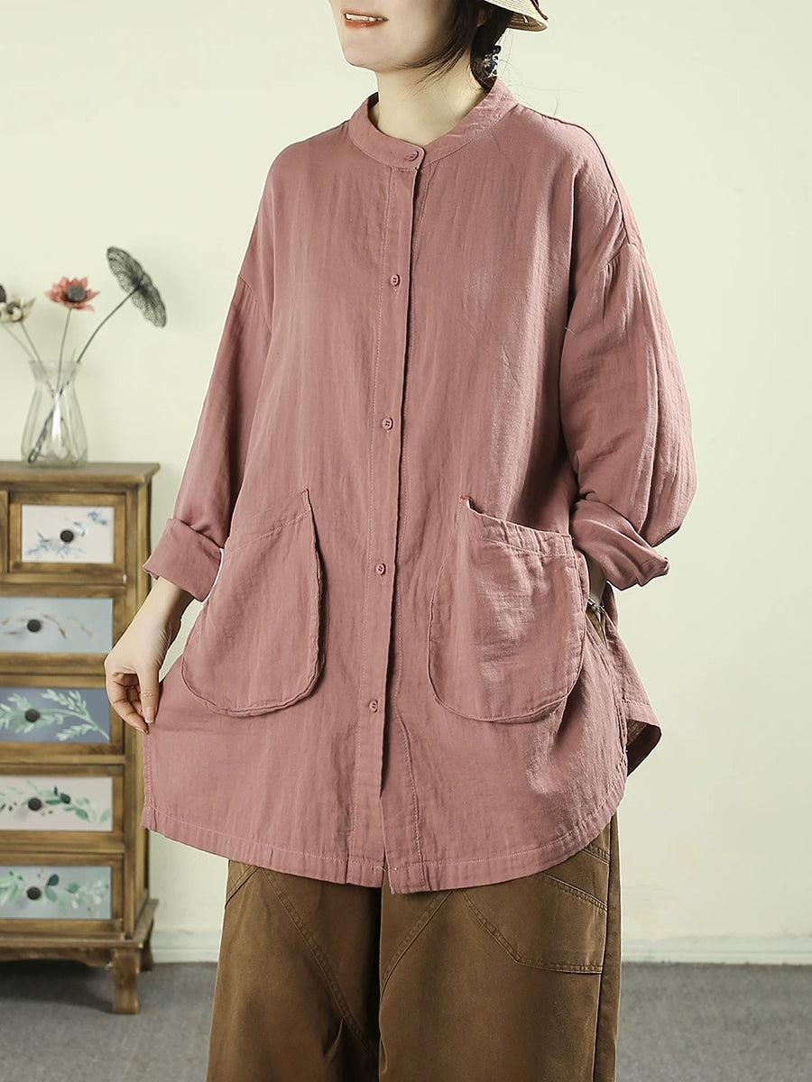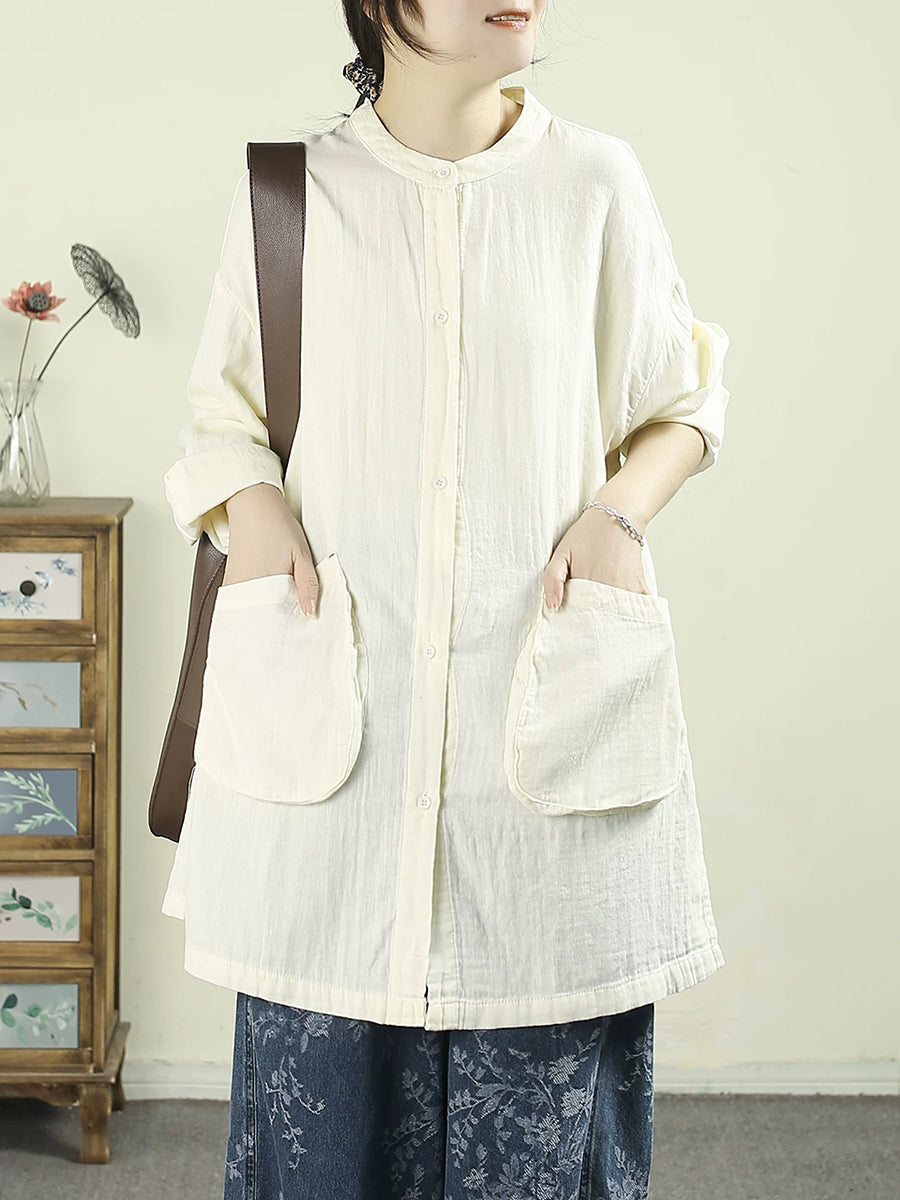 Camicia lunga da donna in cotone puro, stile artistico, primaverile