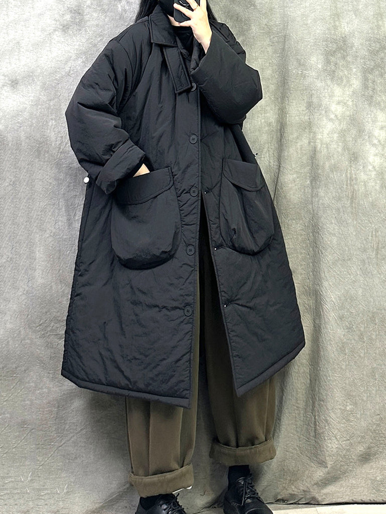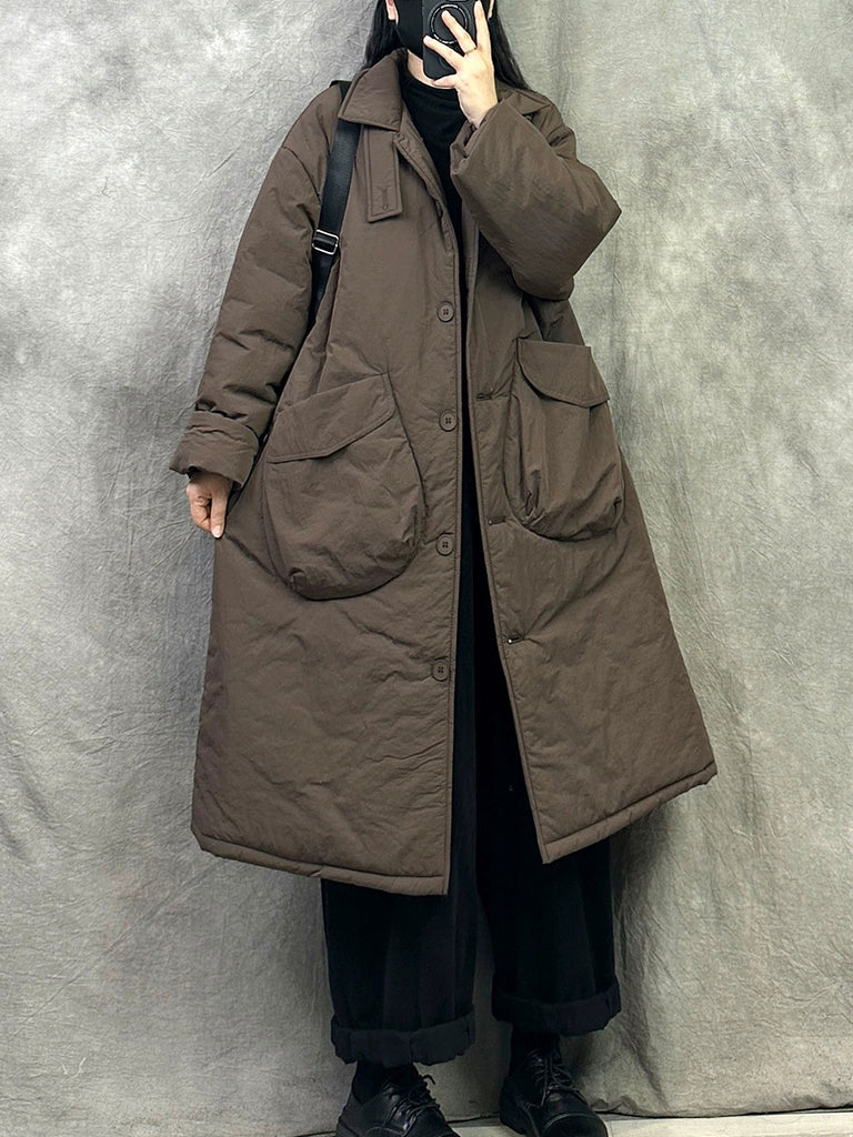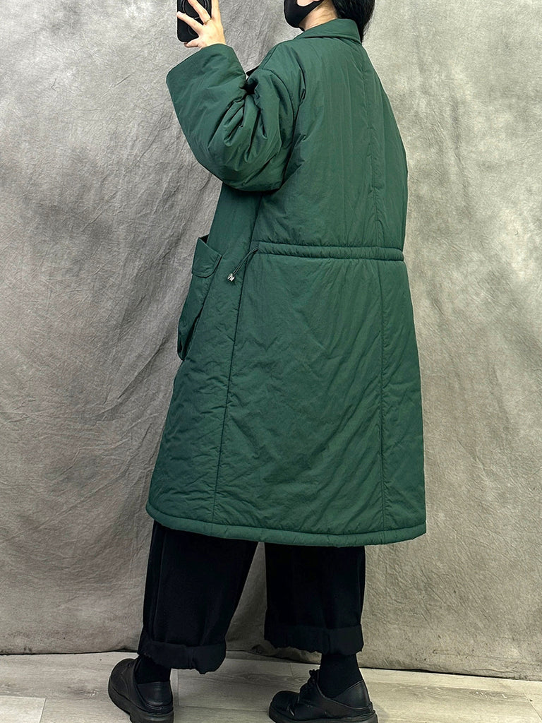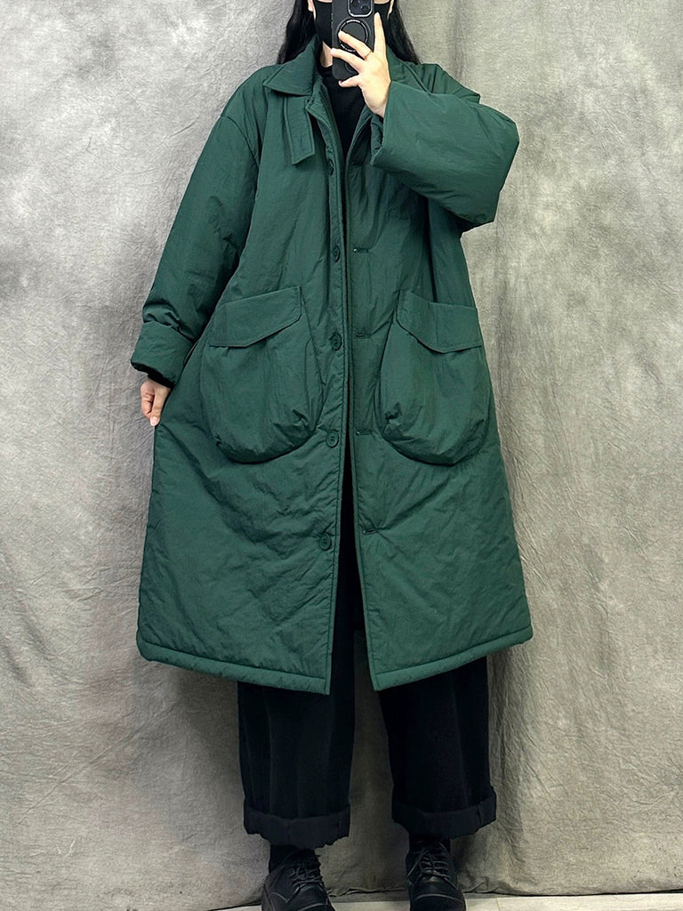 Cappotto invernale da donna imbottito con colletto rovesciato, colore puro
