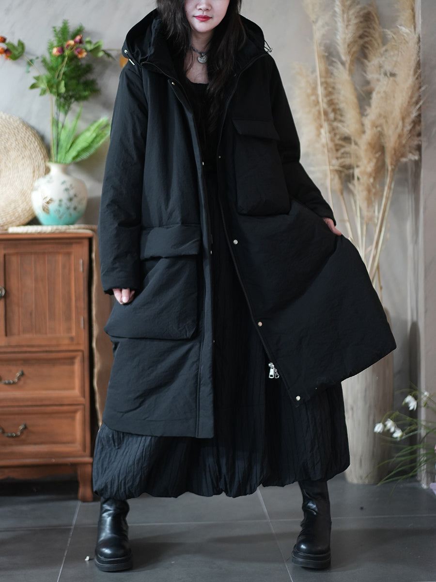 Cappotto invernale imbottito con cappuccio e tasche in tinta unita da donna