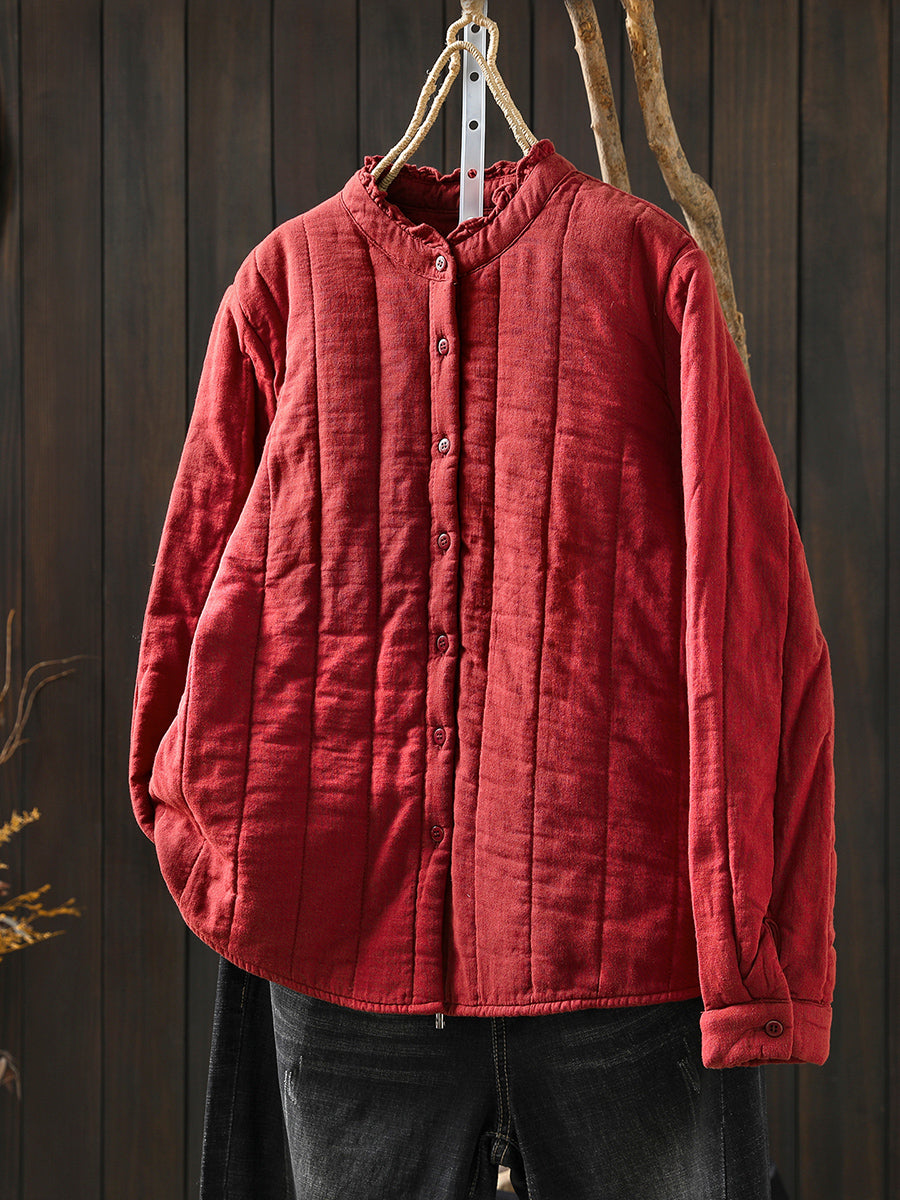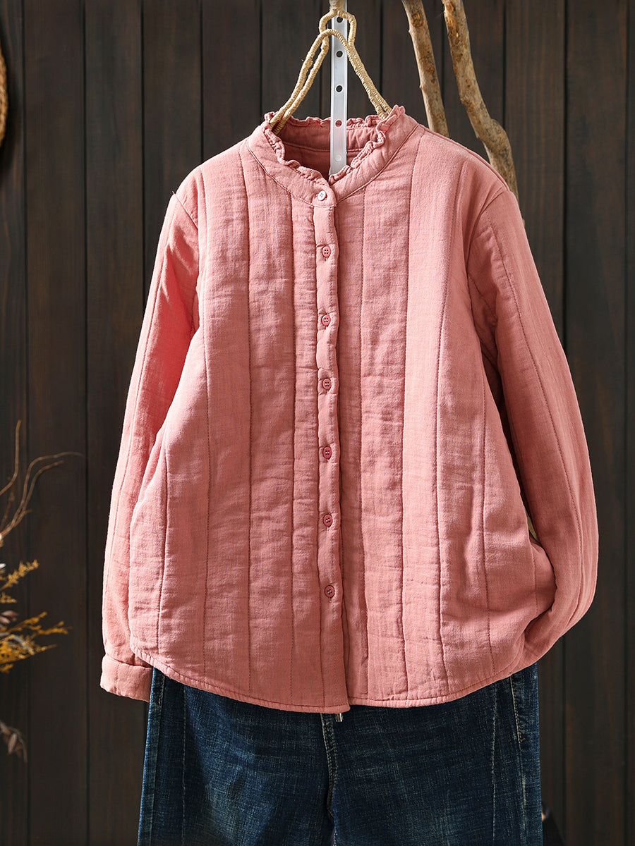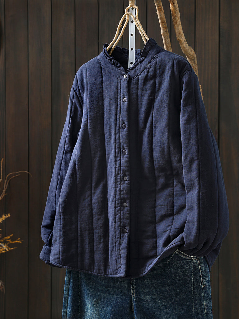 Cappotto imbottito invernale da donna con collo alto e colori puri