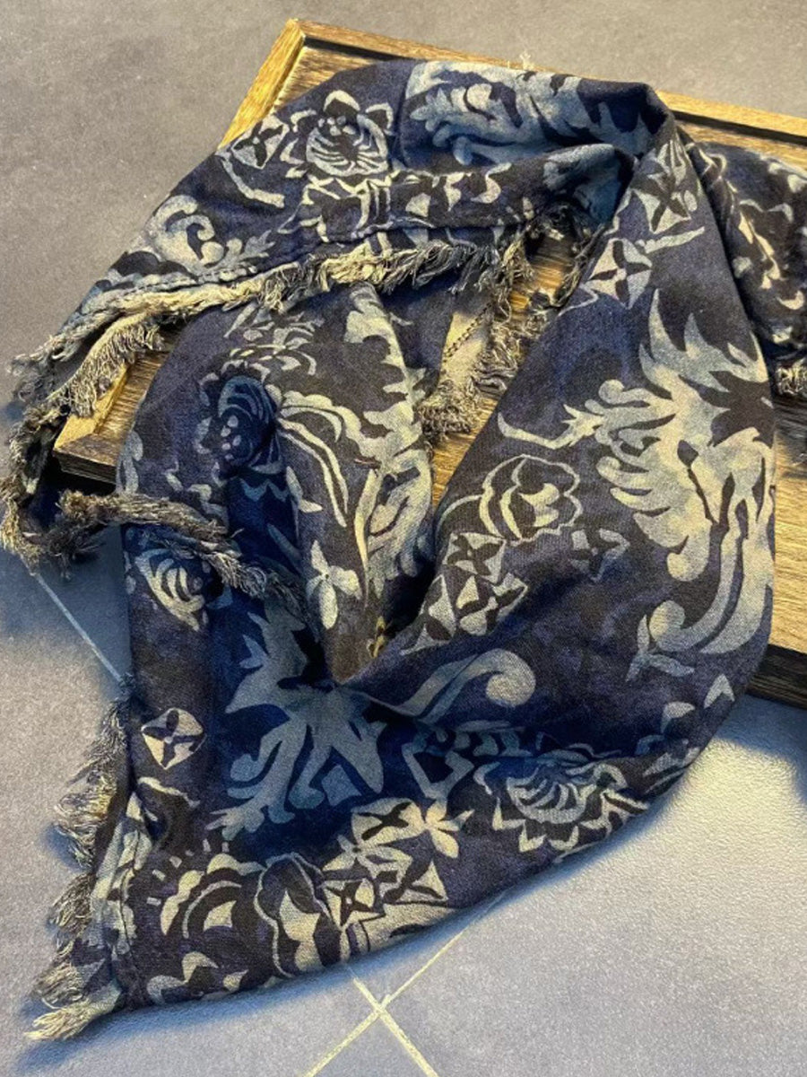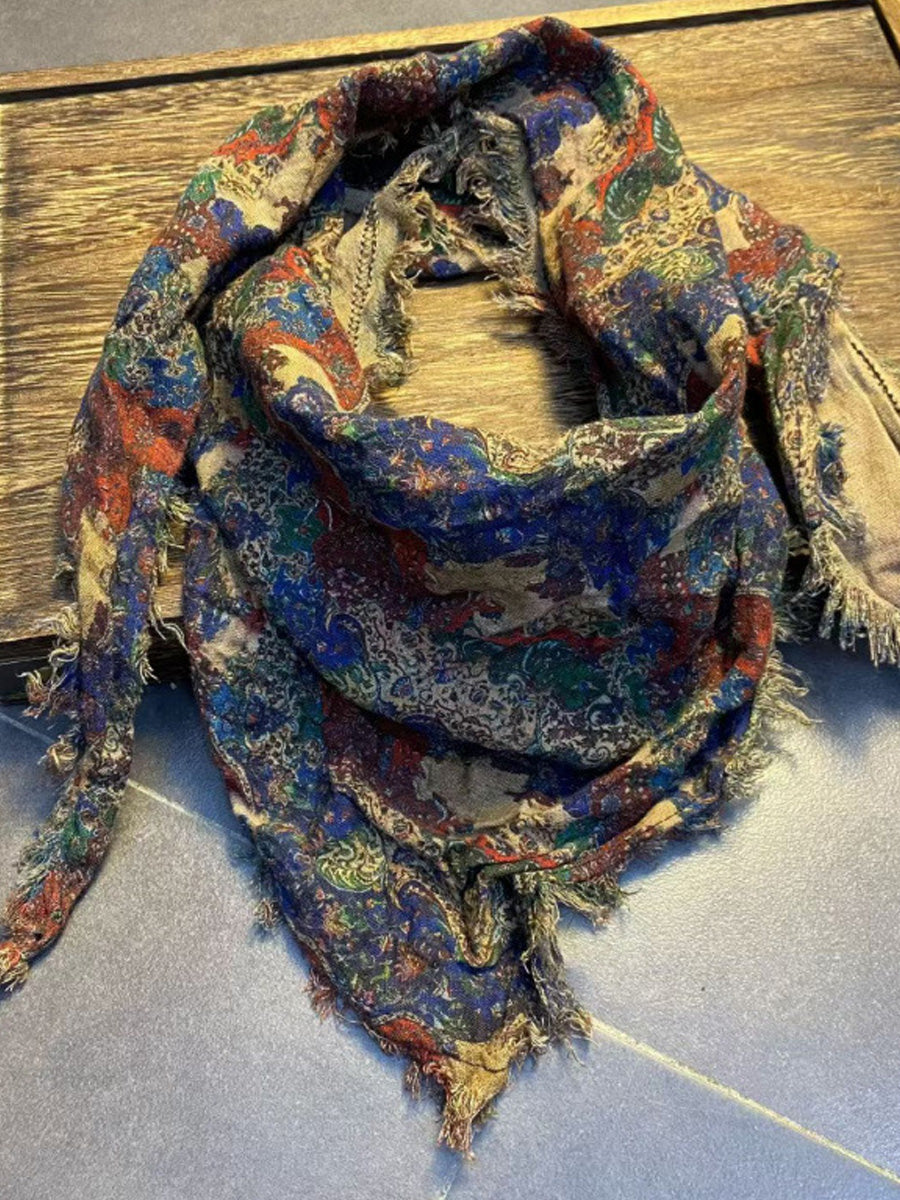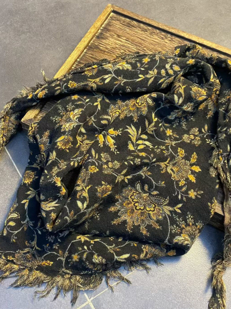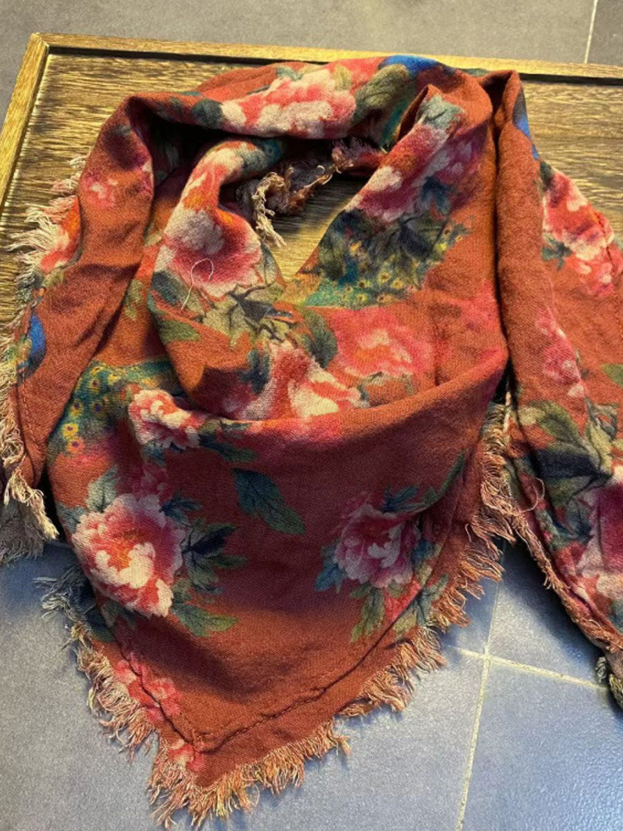 Sciarpa vintage da donna con motivo floreale a triangolo e bordo grezzo