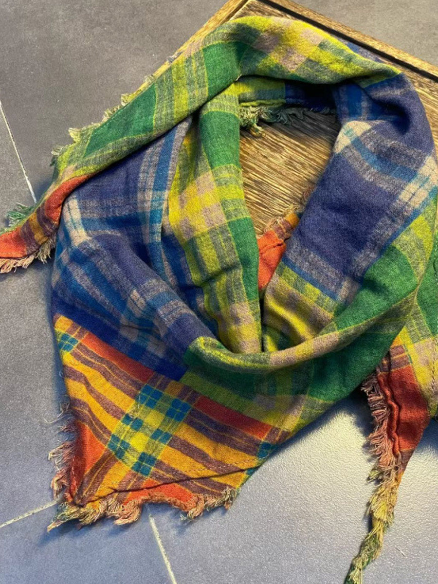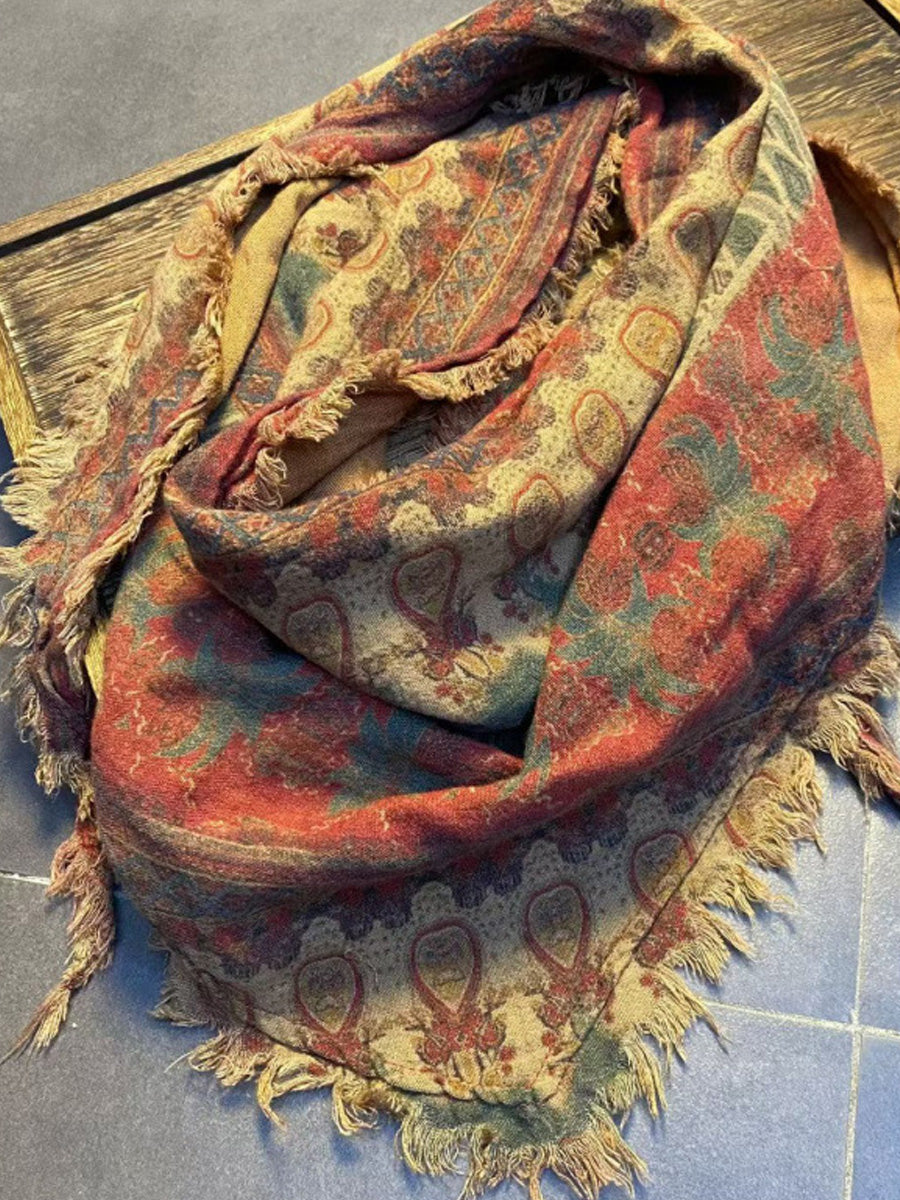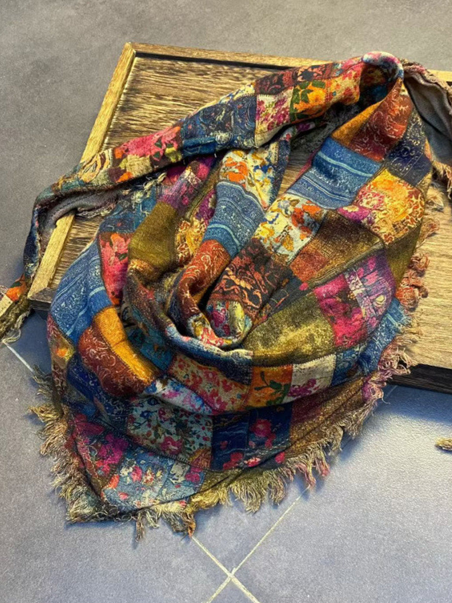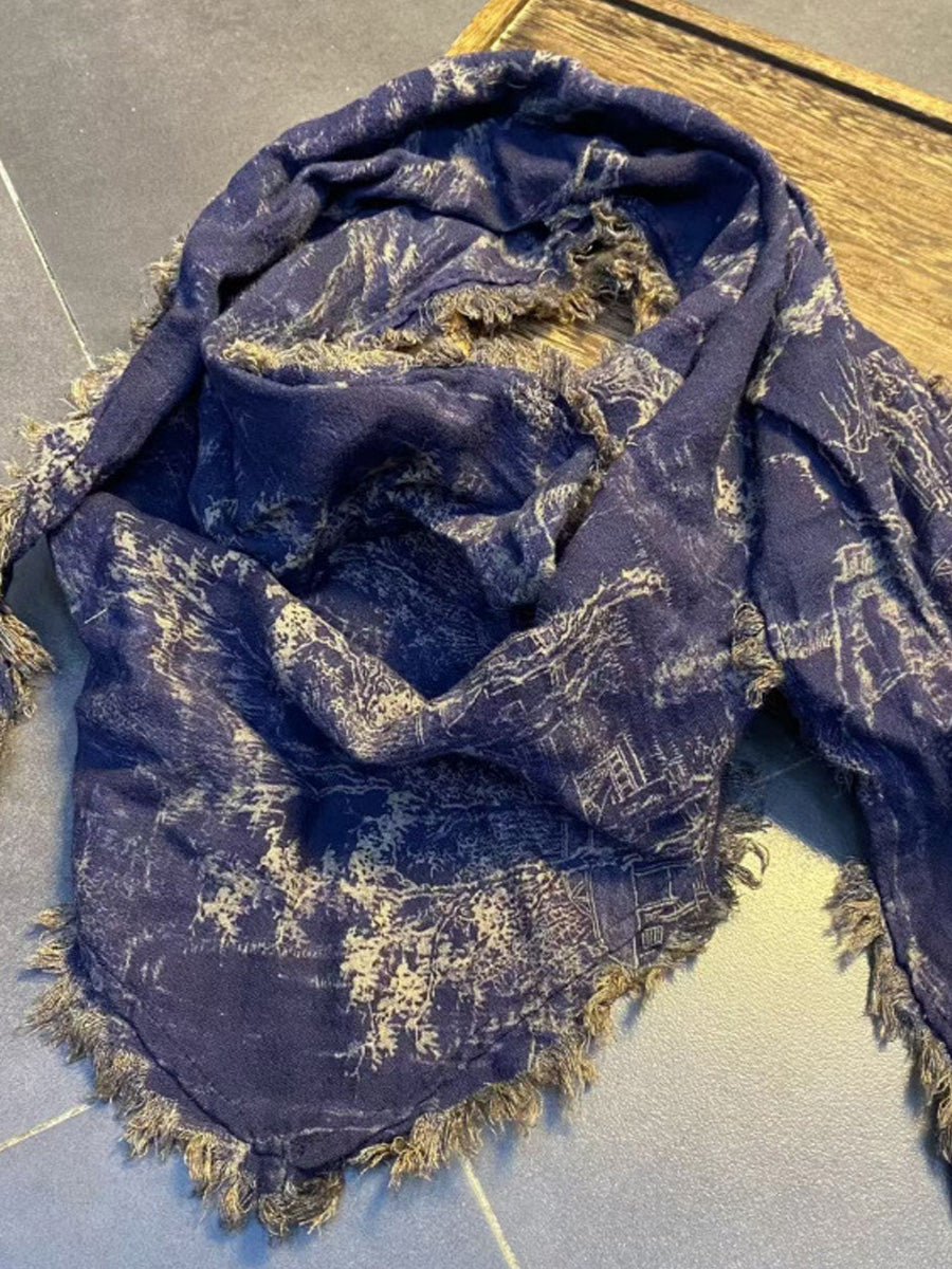 Sciarpa vintage da donna con motivo floreale a triangolo e bordo grezzo