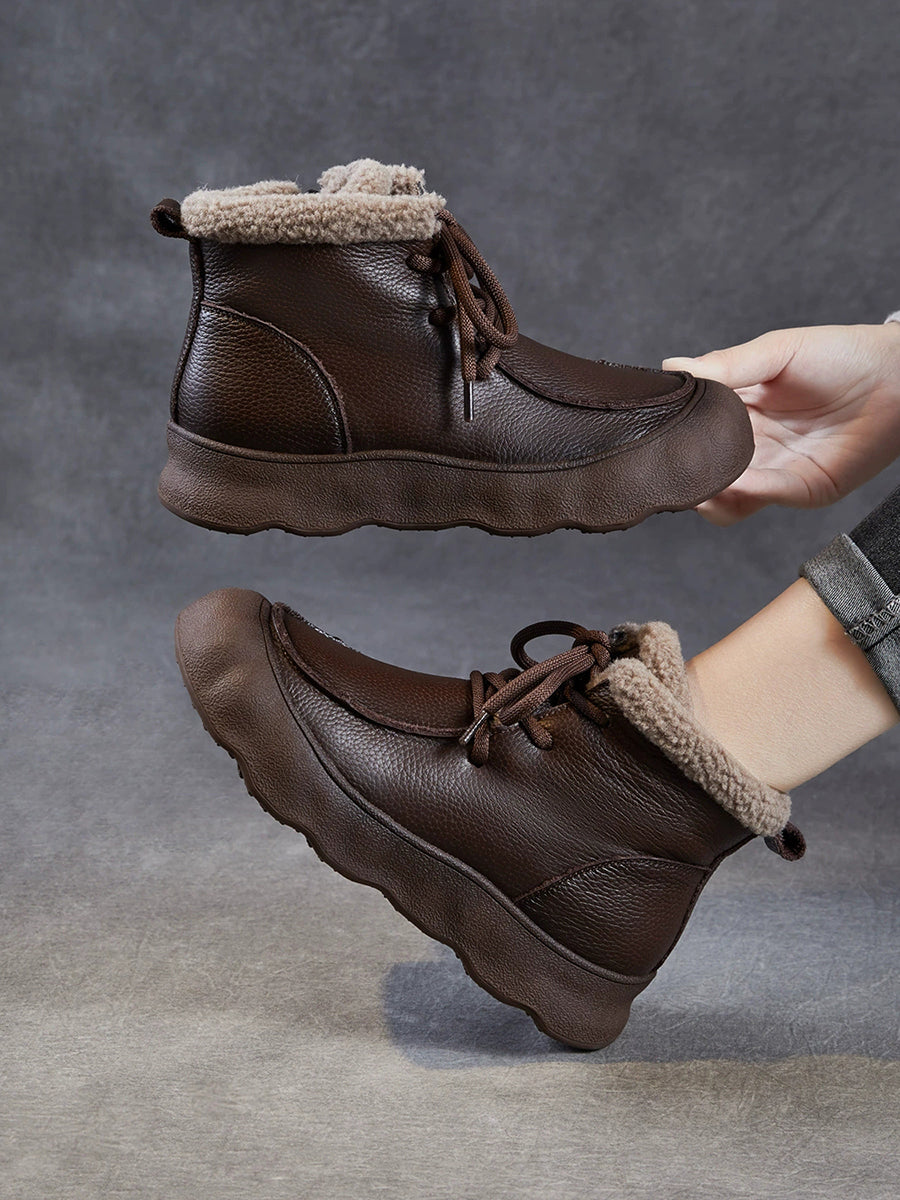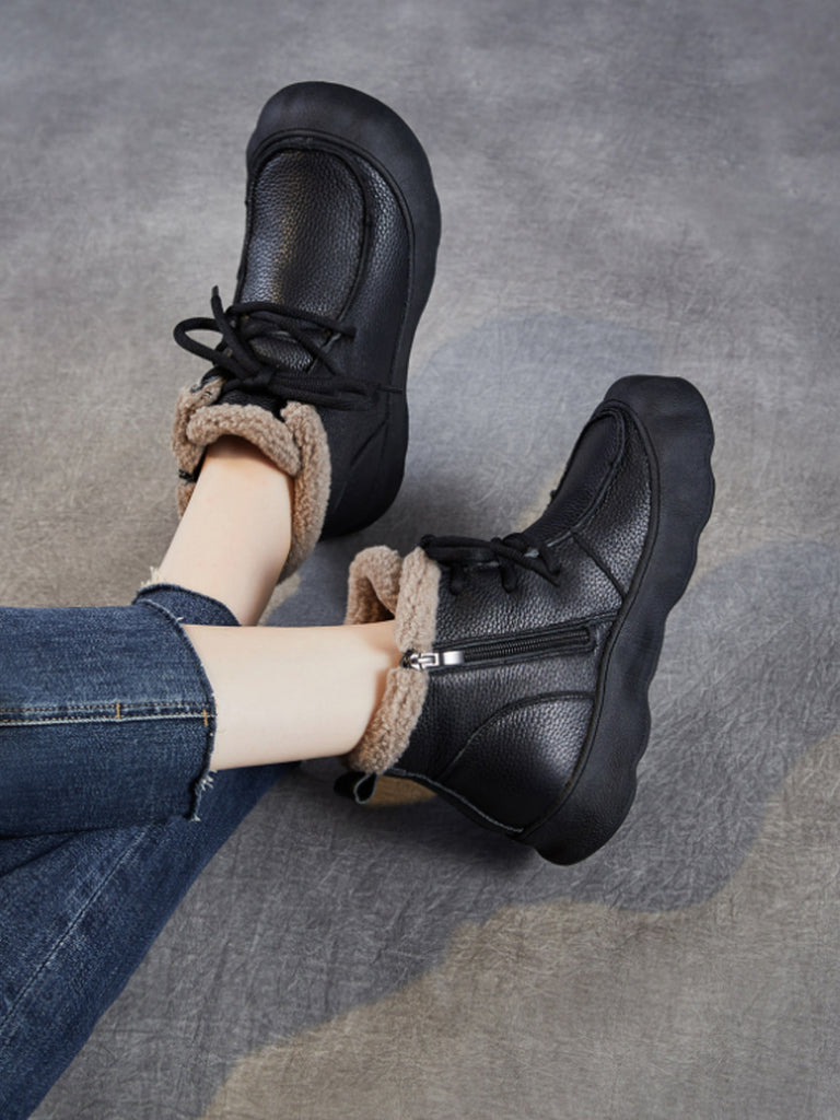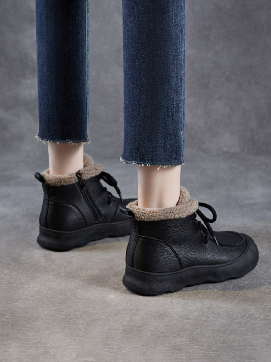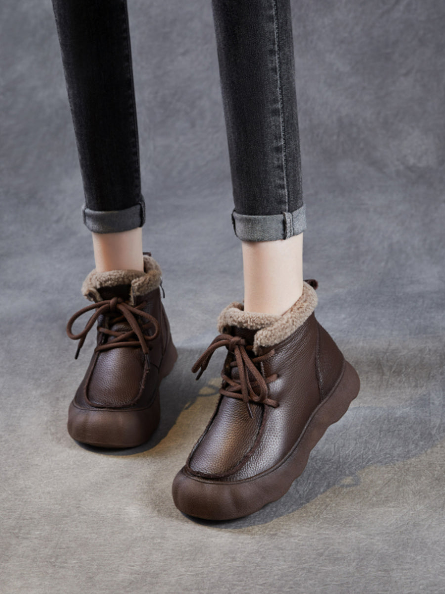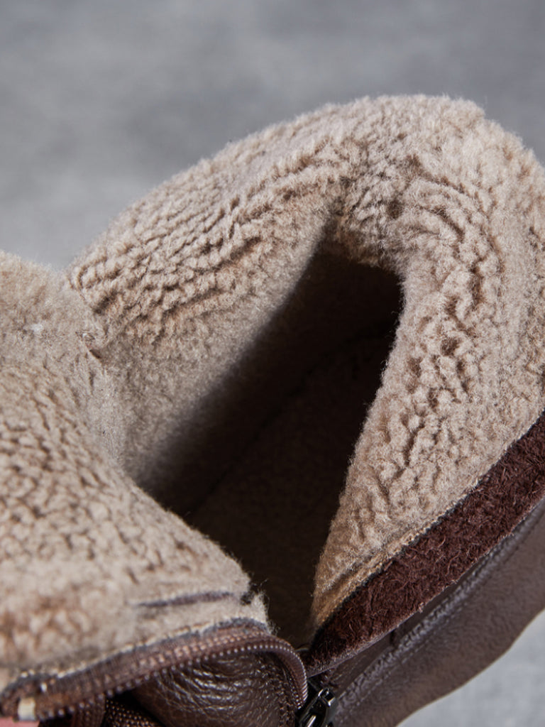 Stivaletti da donna vintage in vera pelle foderati in pile