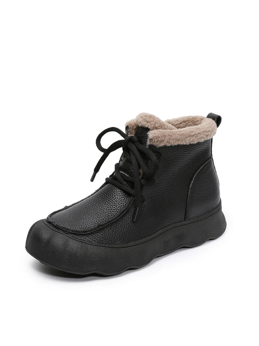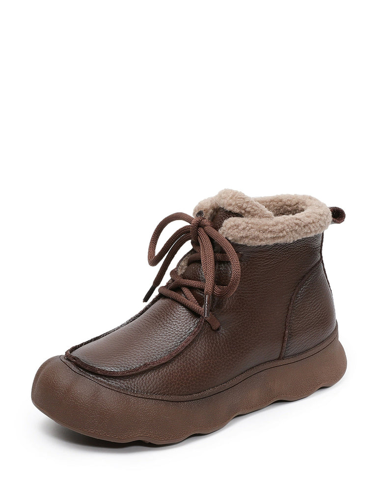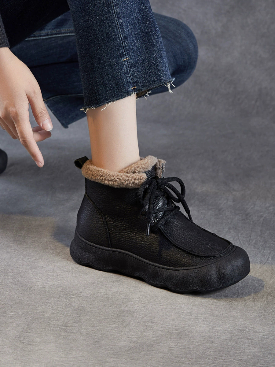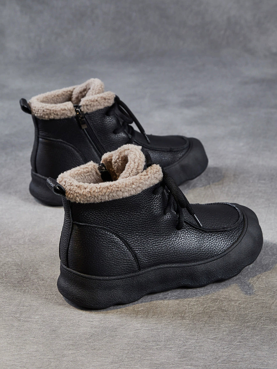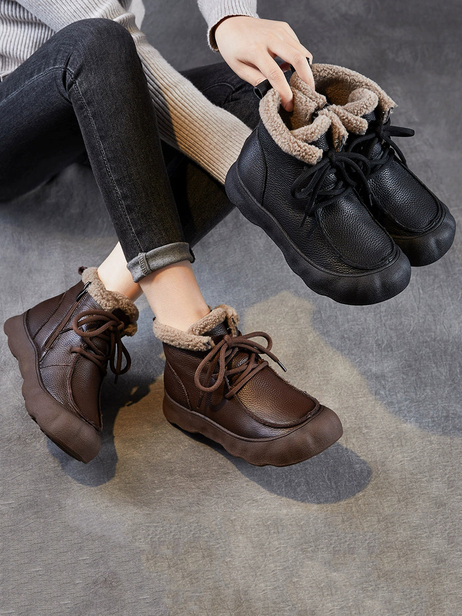 Stivaletti da donna vintage in vera pelle foderati in pile