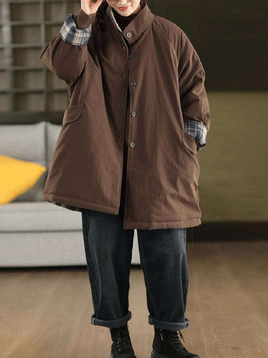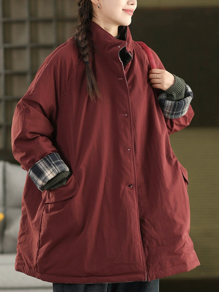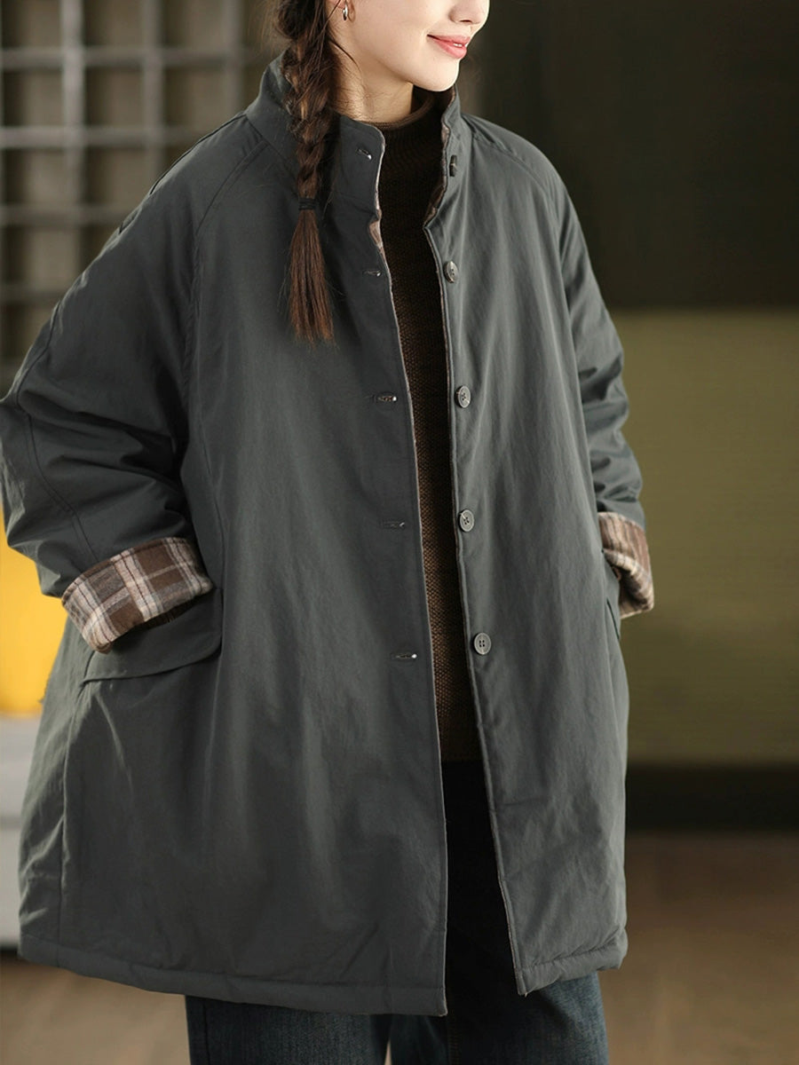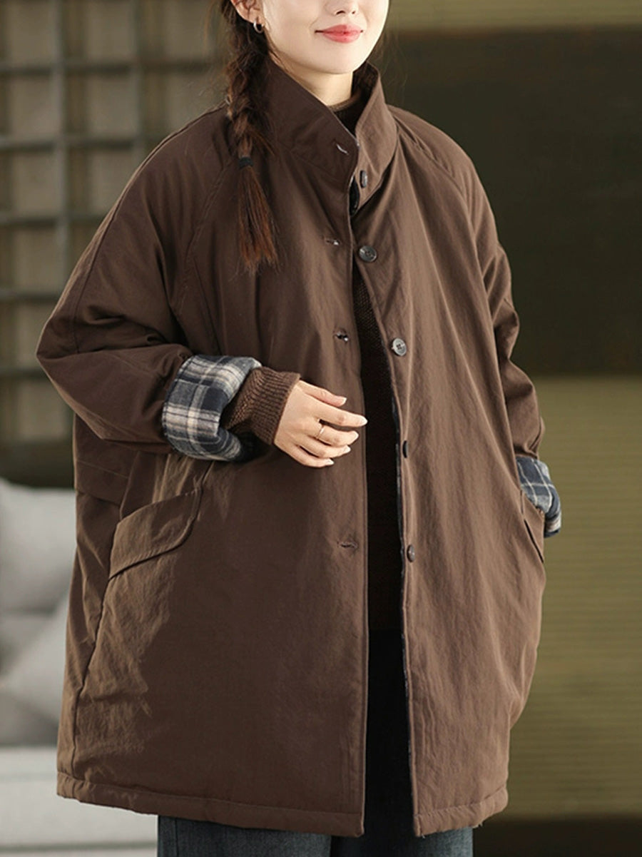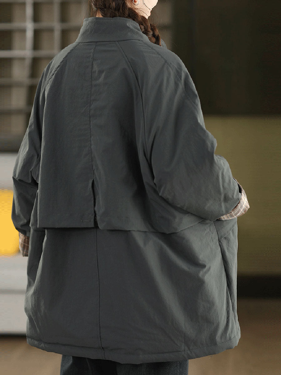Realizzato in cotone, questo cappotto imbottito presenta un design classico in tinta unita e un colletto a punta. Progettato con ampie maniche raglan che offrono uno stile retrò, è ideale sia per