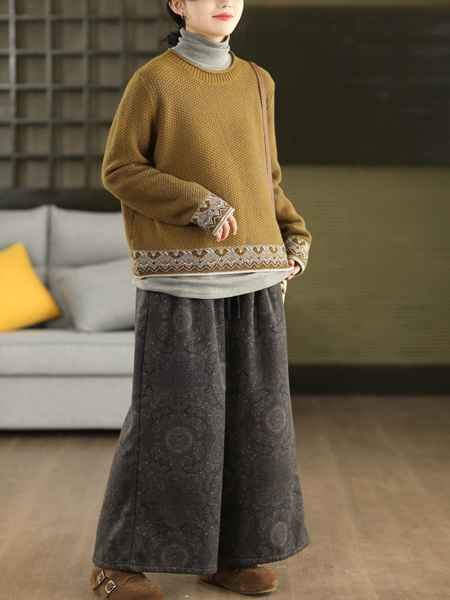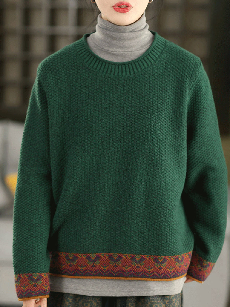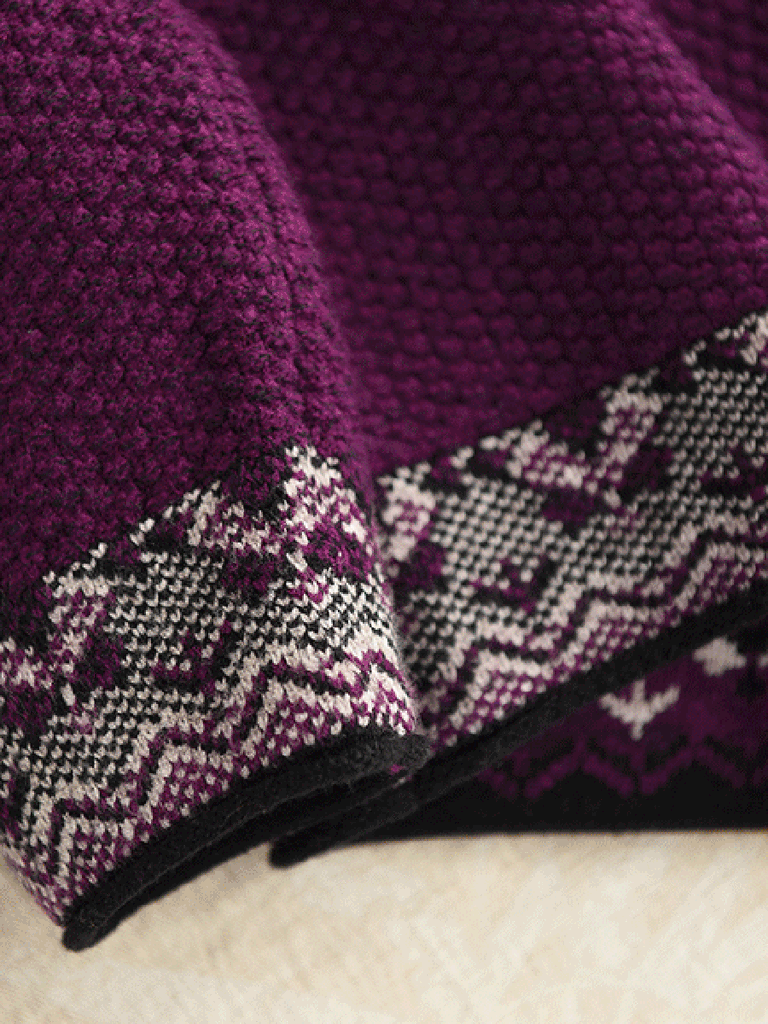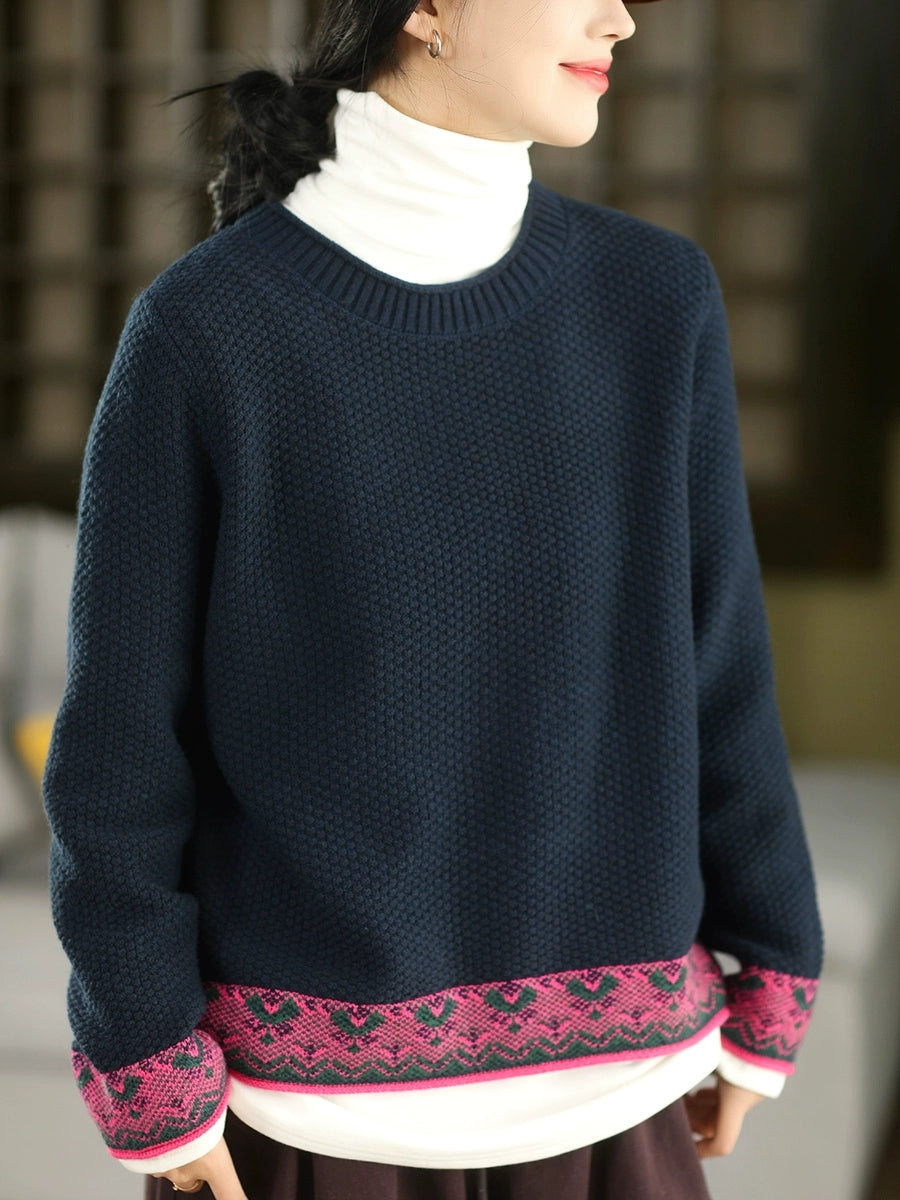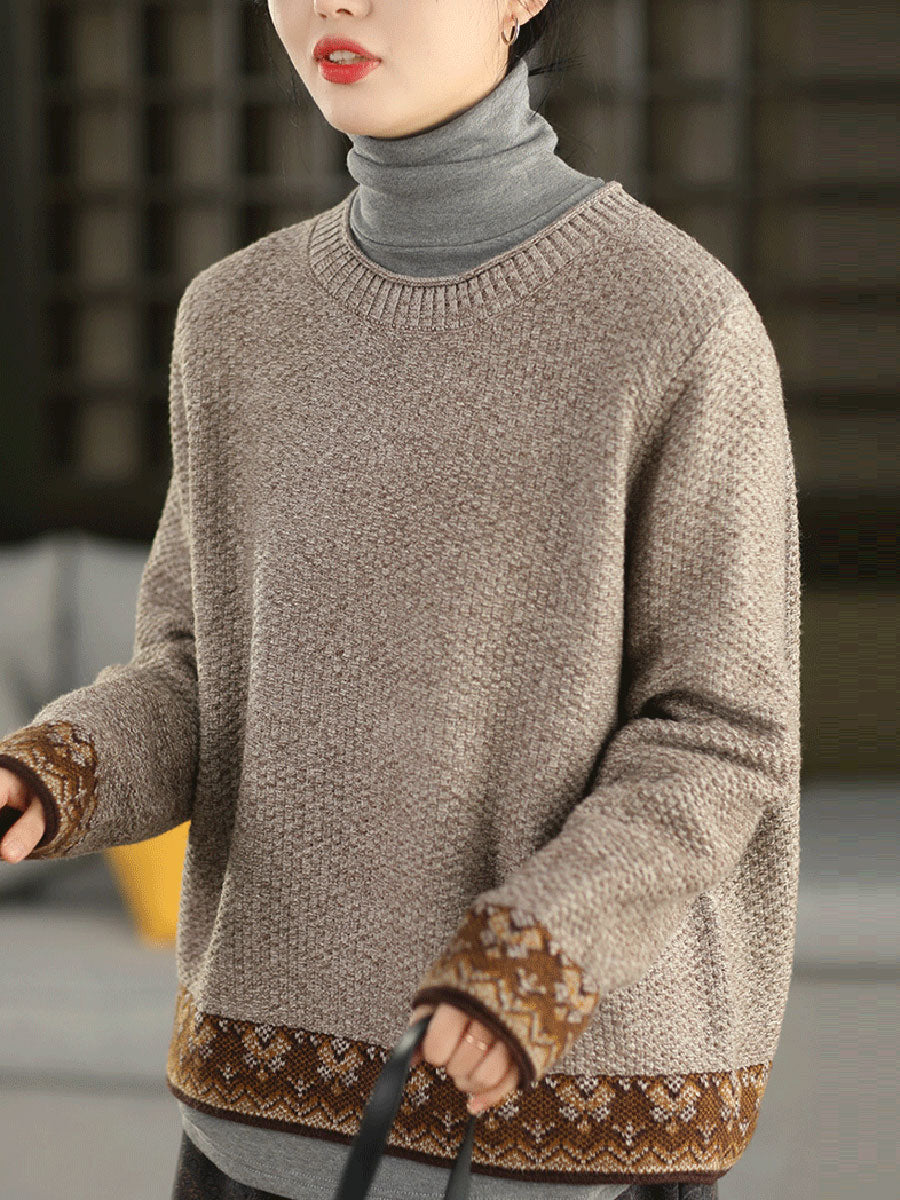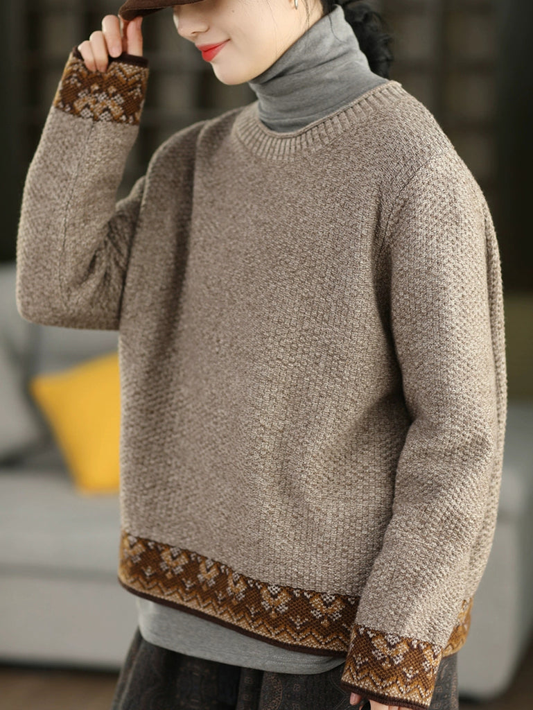 Maglione etnico autunnale da donna con scollo a V in jacquard