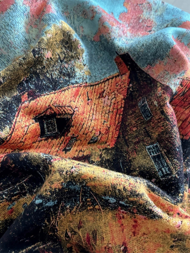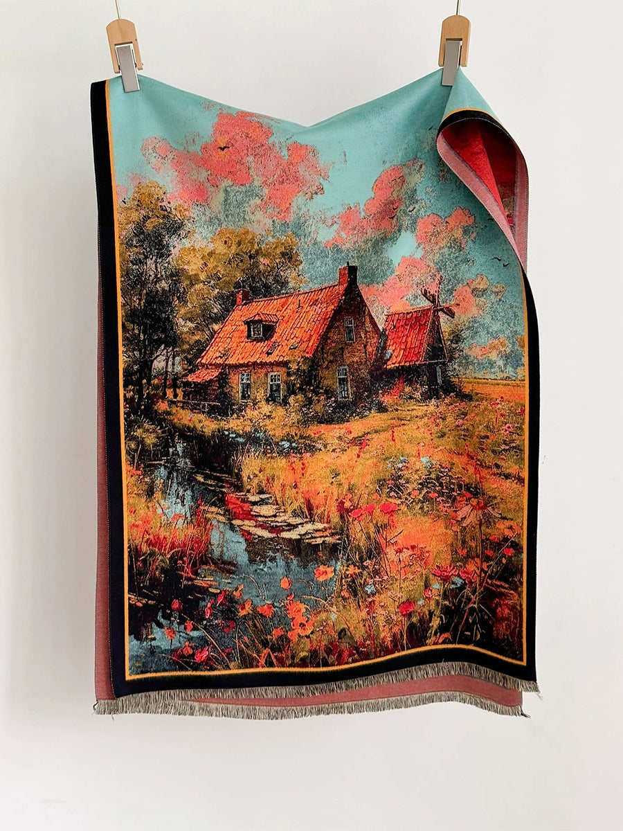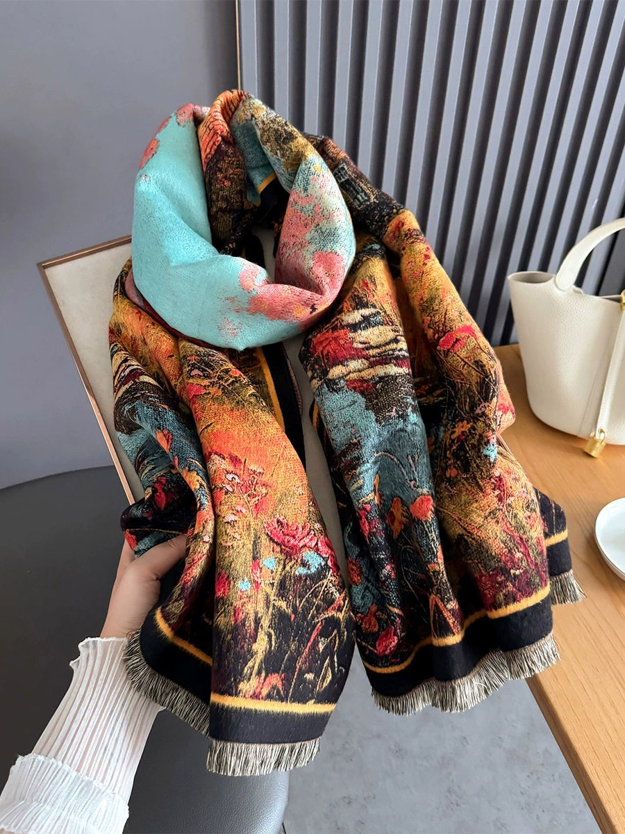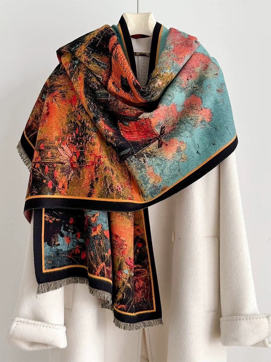 Sciarpa scialle spessa con nappe e stampa invernale da donna