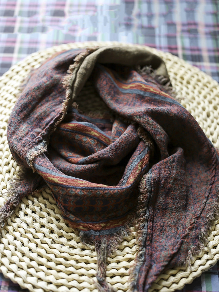 Sciarpa da donna con nappa floreale in cotone stile etnico