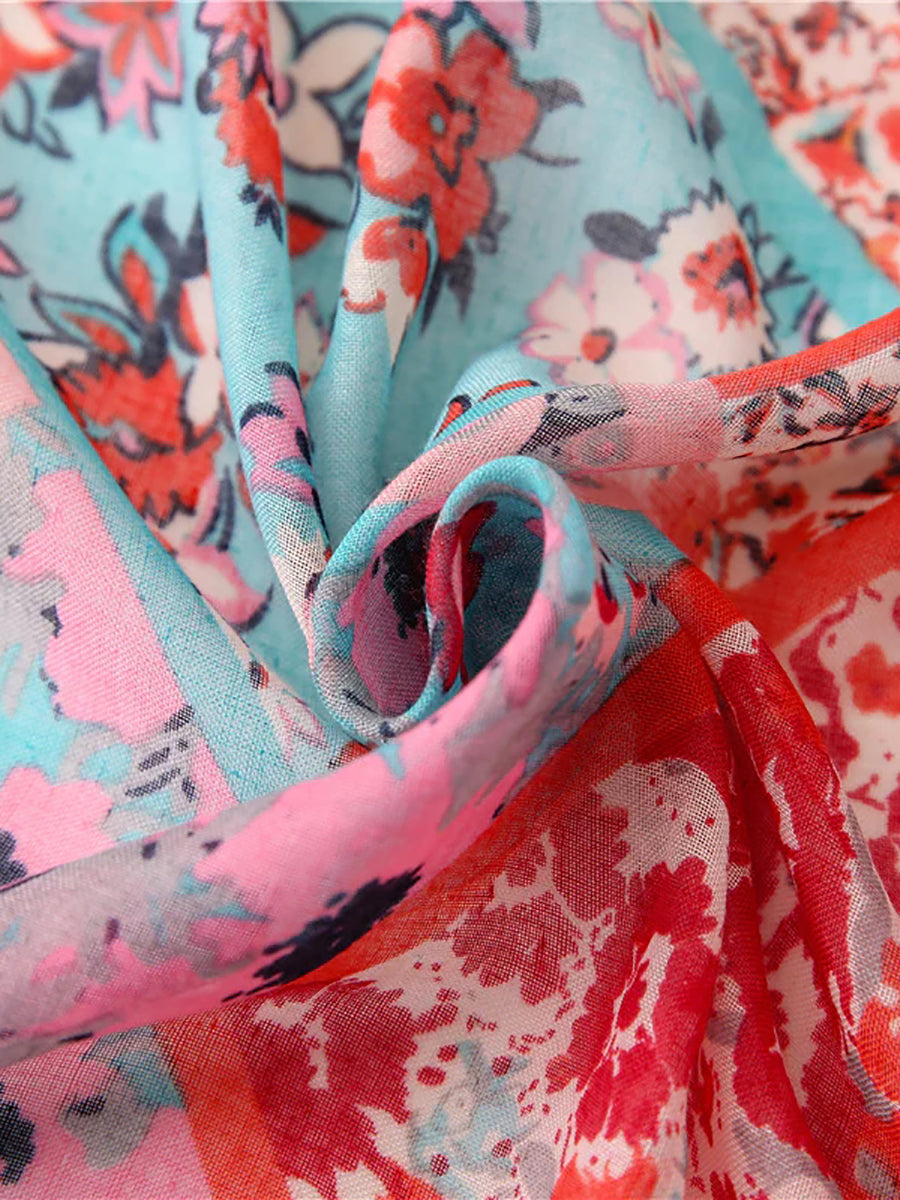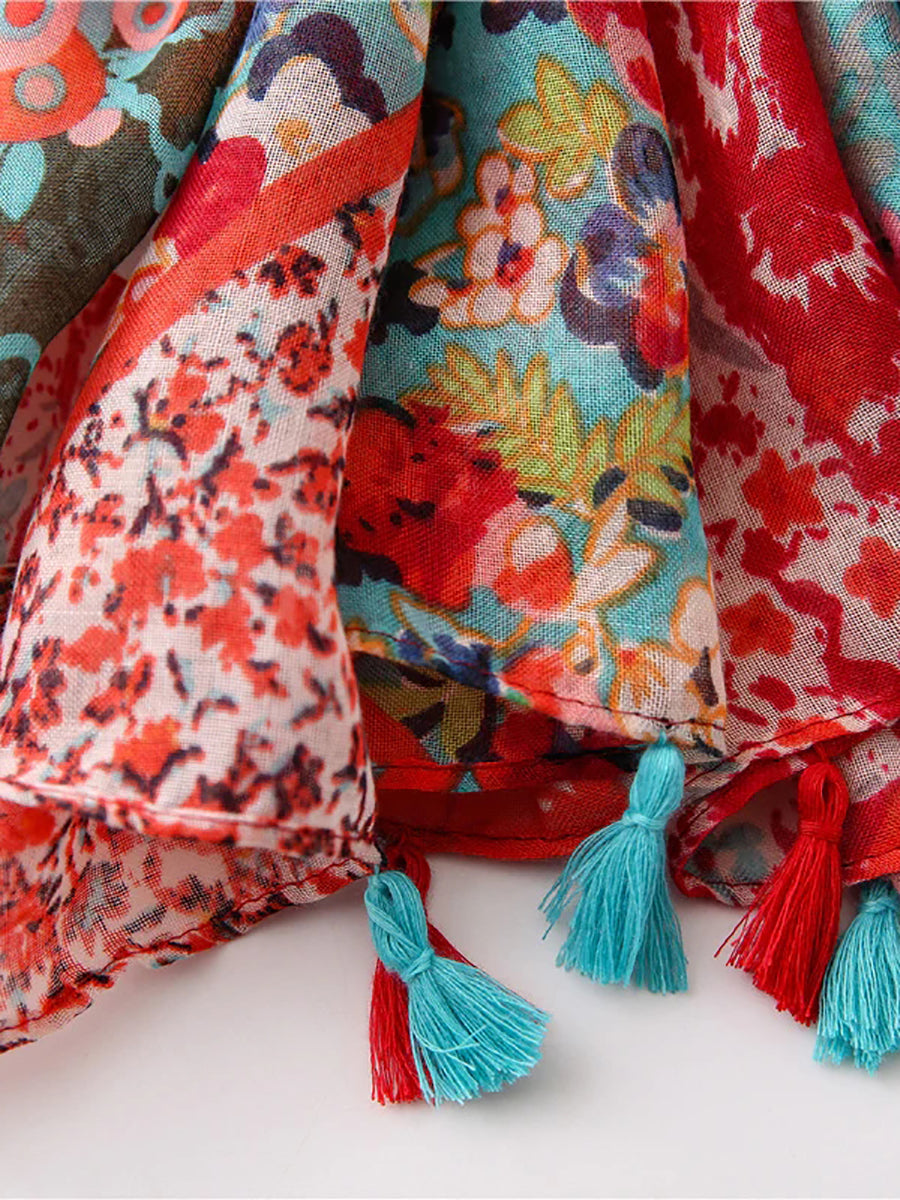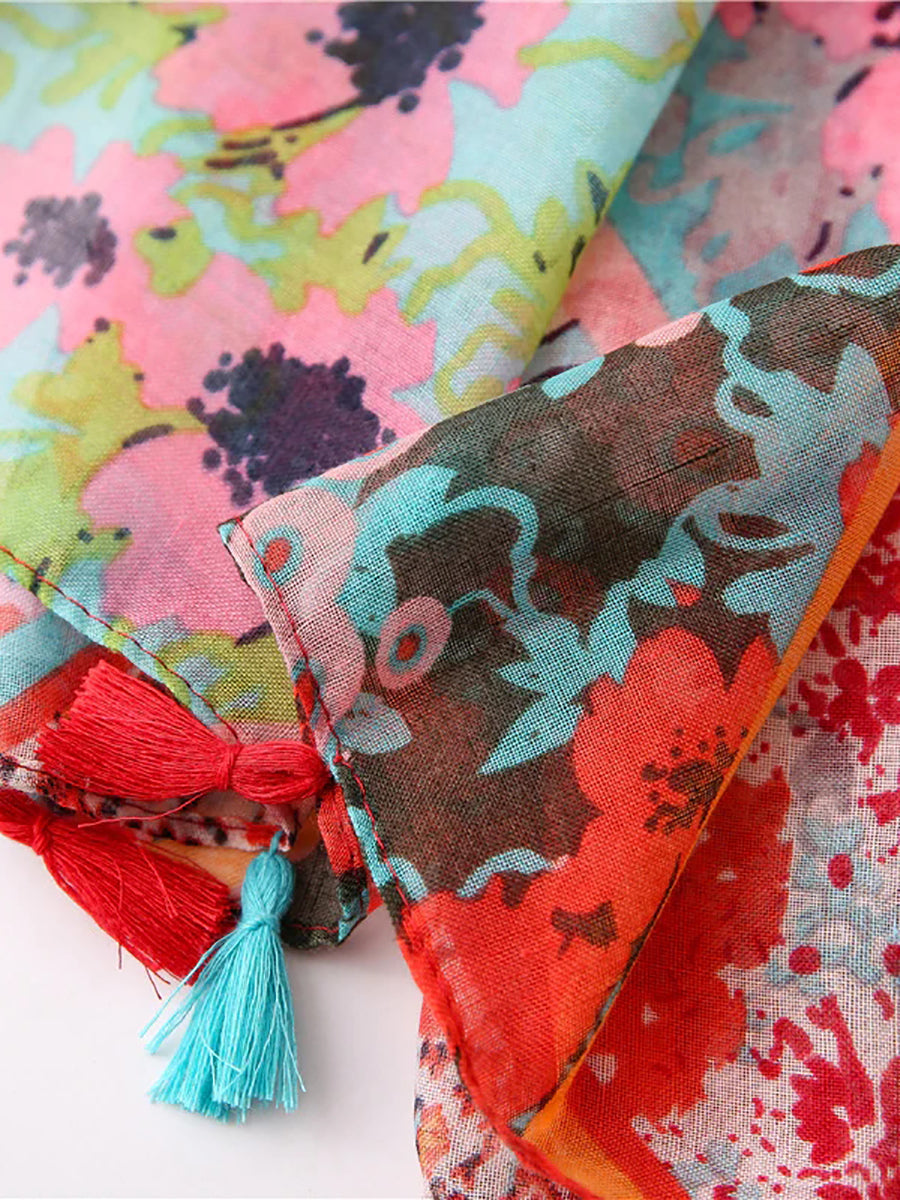 Sciarpa da spiaggia con stampa floreale con protezione solare e nappa