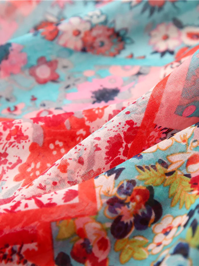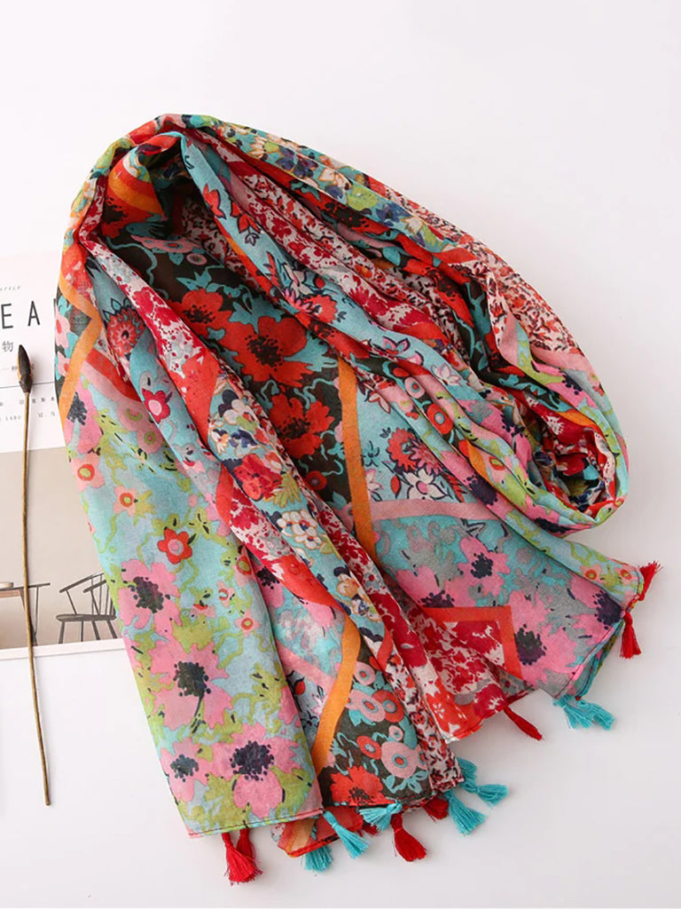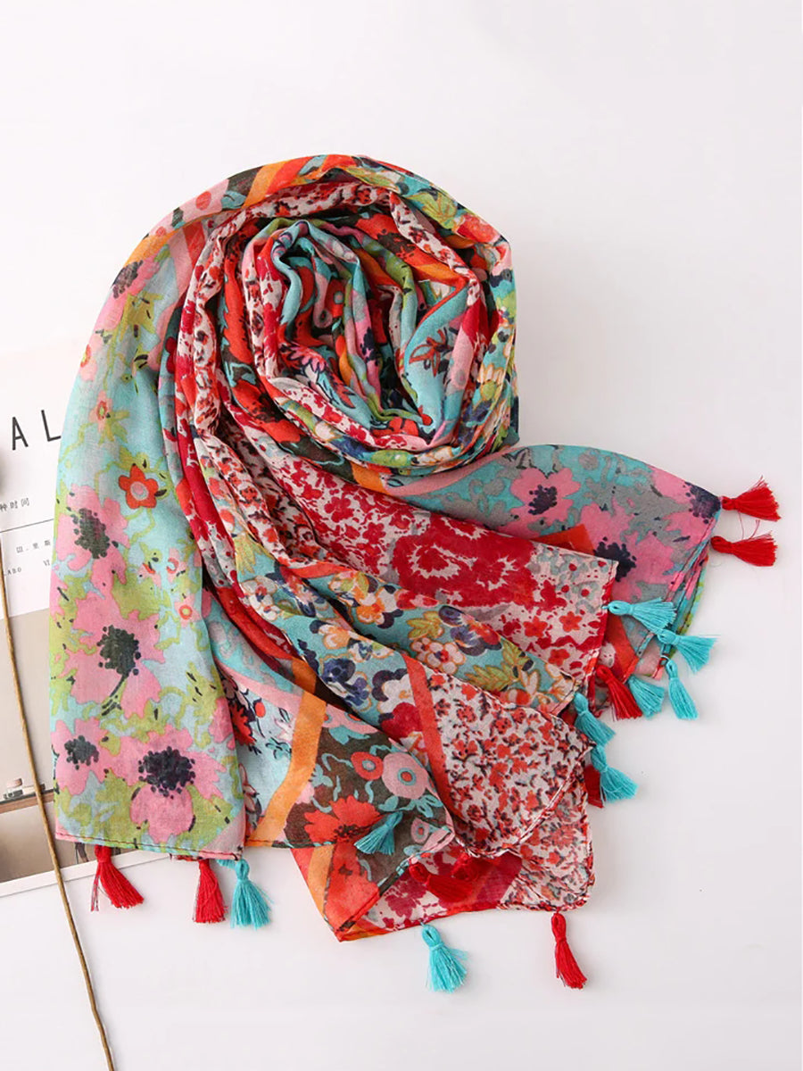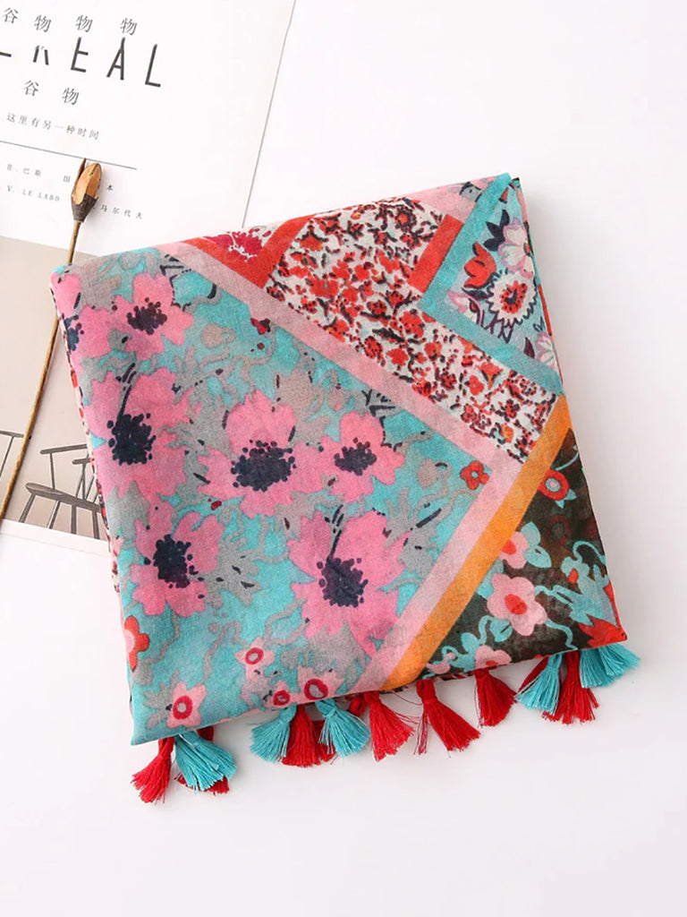 Sciarpa da spiaggia con stampa floreale con protezione solare e nappa