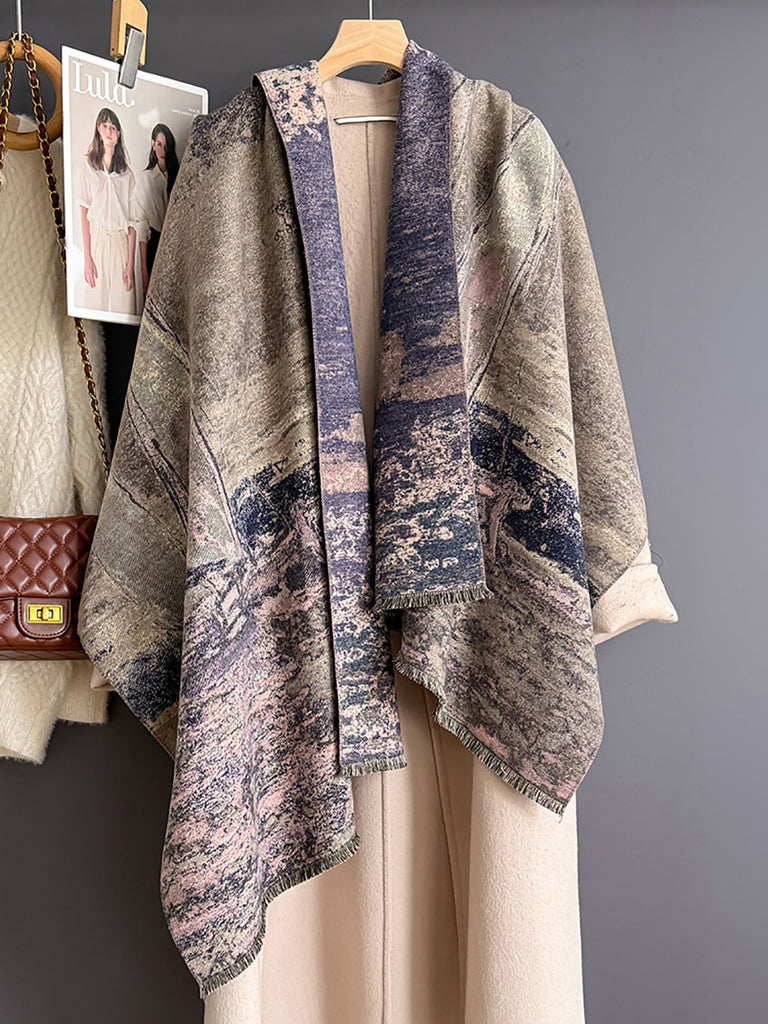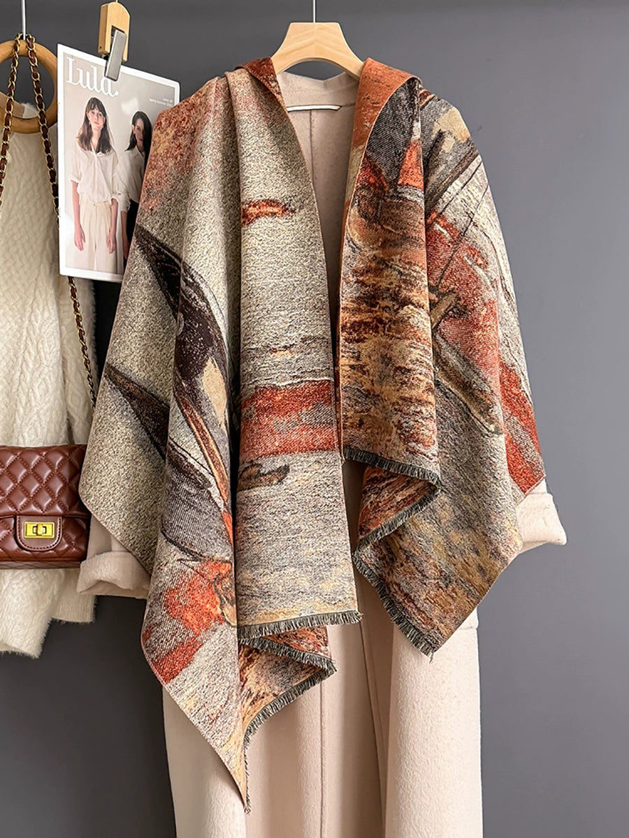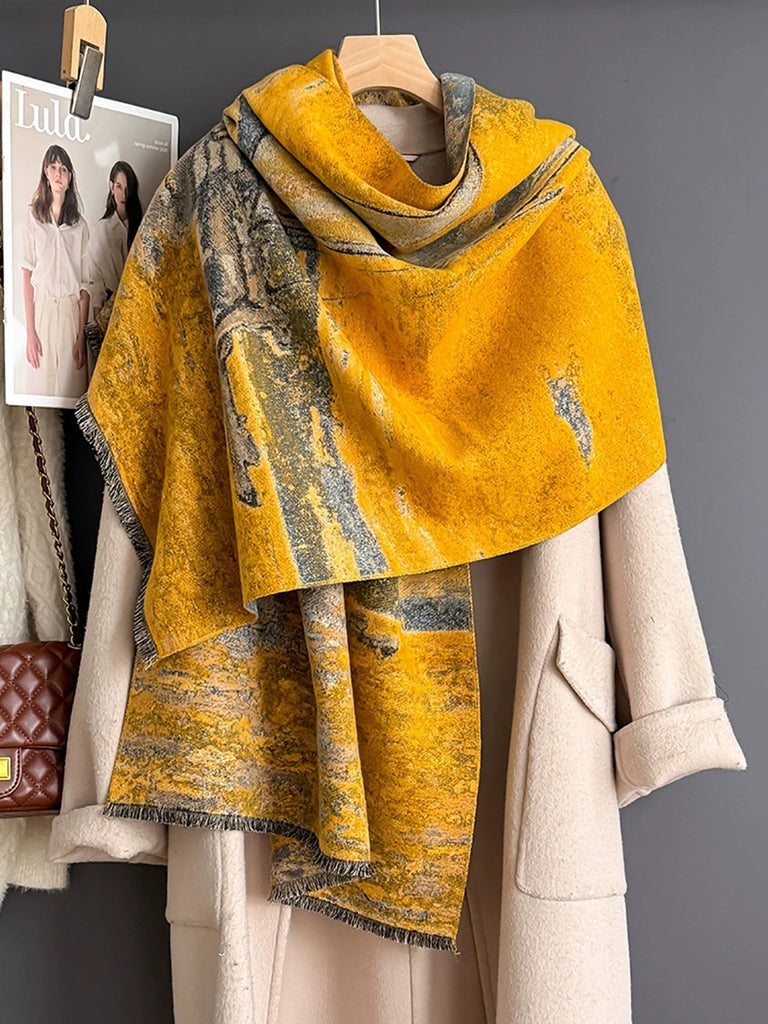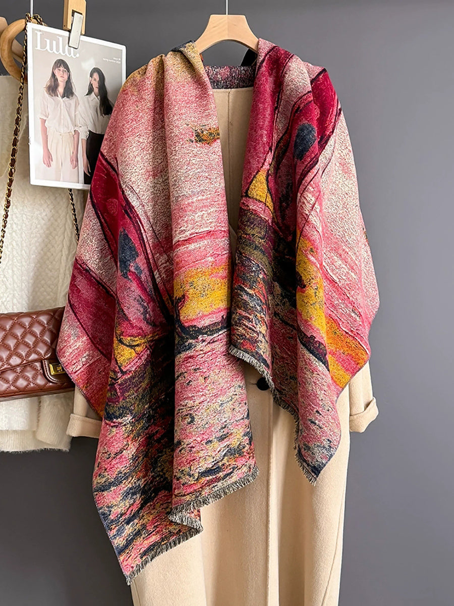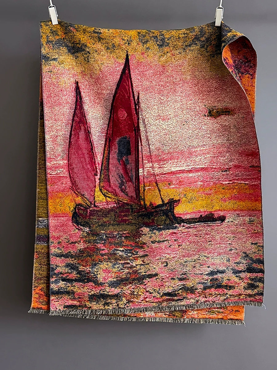 Scialle e sciarpa vintage con barca a vela dipinta a olio invernale