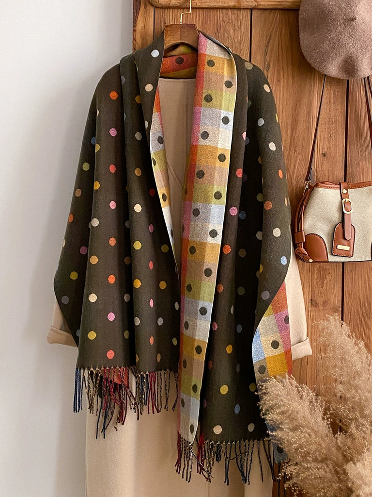 Sciarpa scialle con nappe a quadri colorati vintage invernali da donna