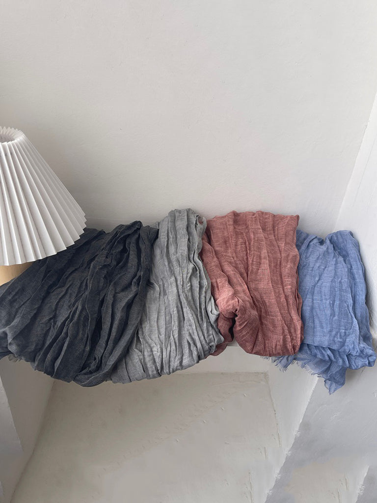 Sciarpa scialle sottile arricciata vintage da donna in puro colore
