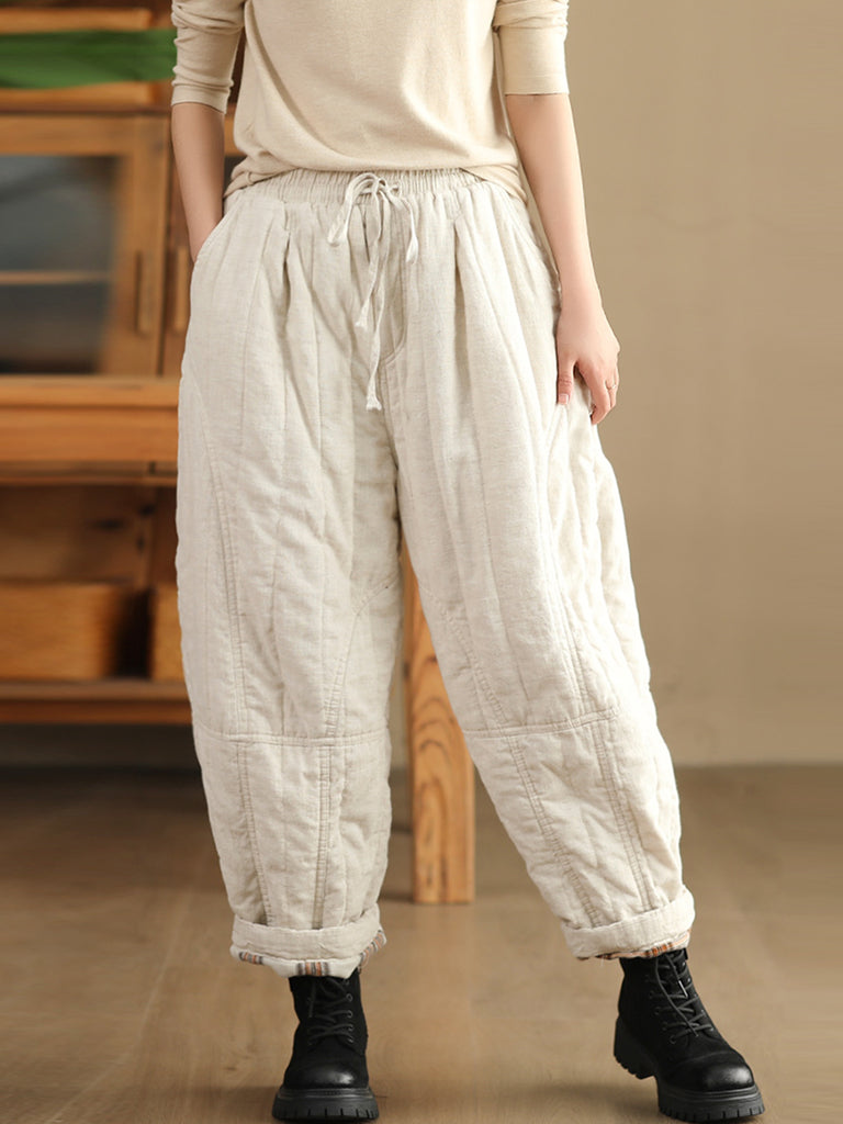 Pantaloni harem imbottiti in lino 100% colore puro da donna autunnali