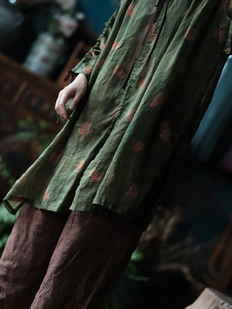 Camicia ampia in ramiè con scollo a V e fiori retrò estivi da donna