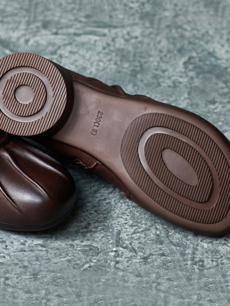 Stivali da donna vintage autunnali in pelle con tacco basso