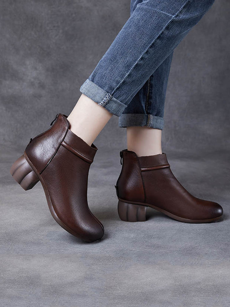 Stivaletti vintage da donna in vera pelle con tacco medio
