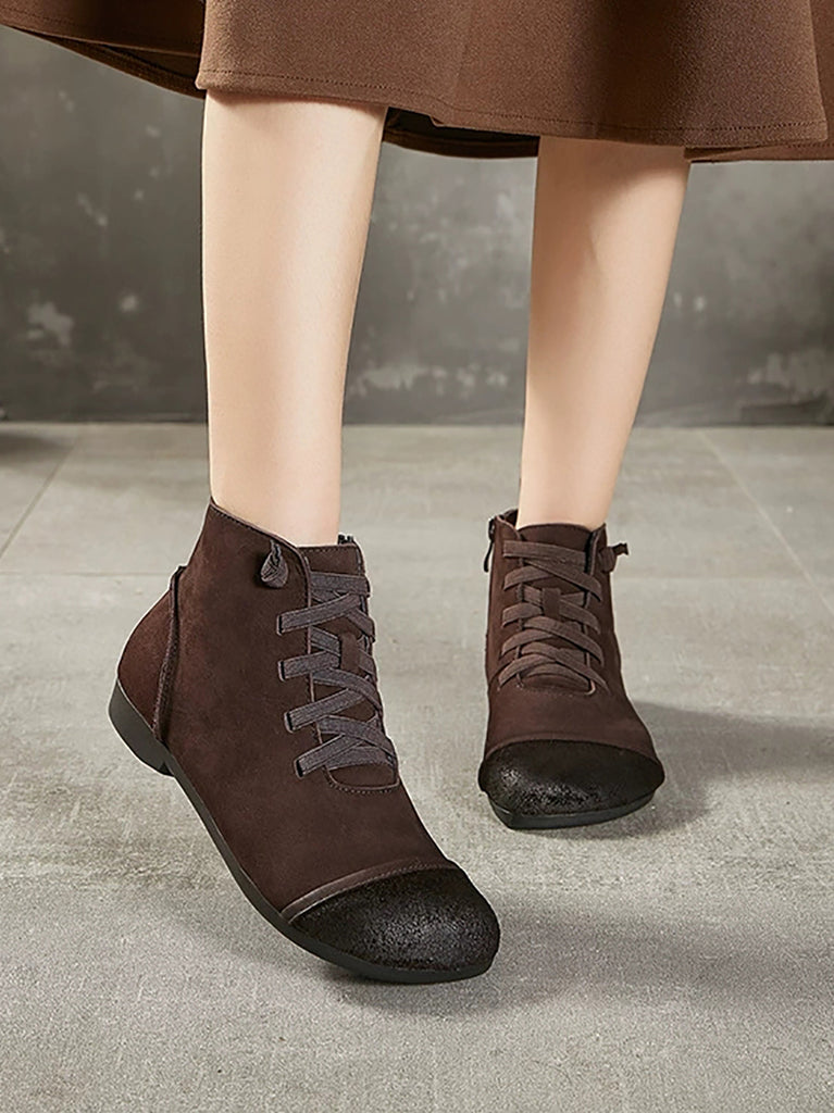 Stivaletti vintage da donna in vera pelle con giunzioni