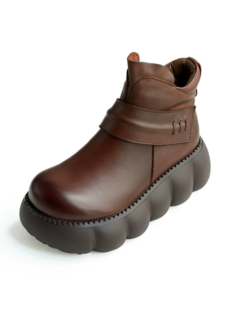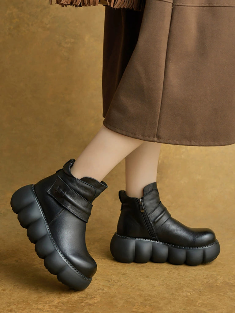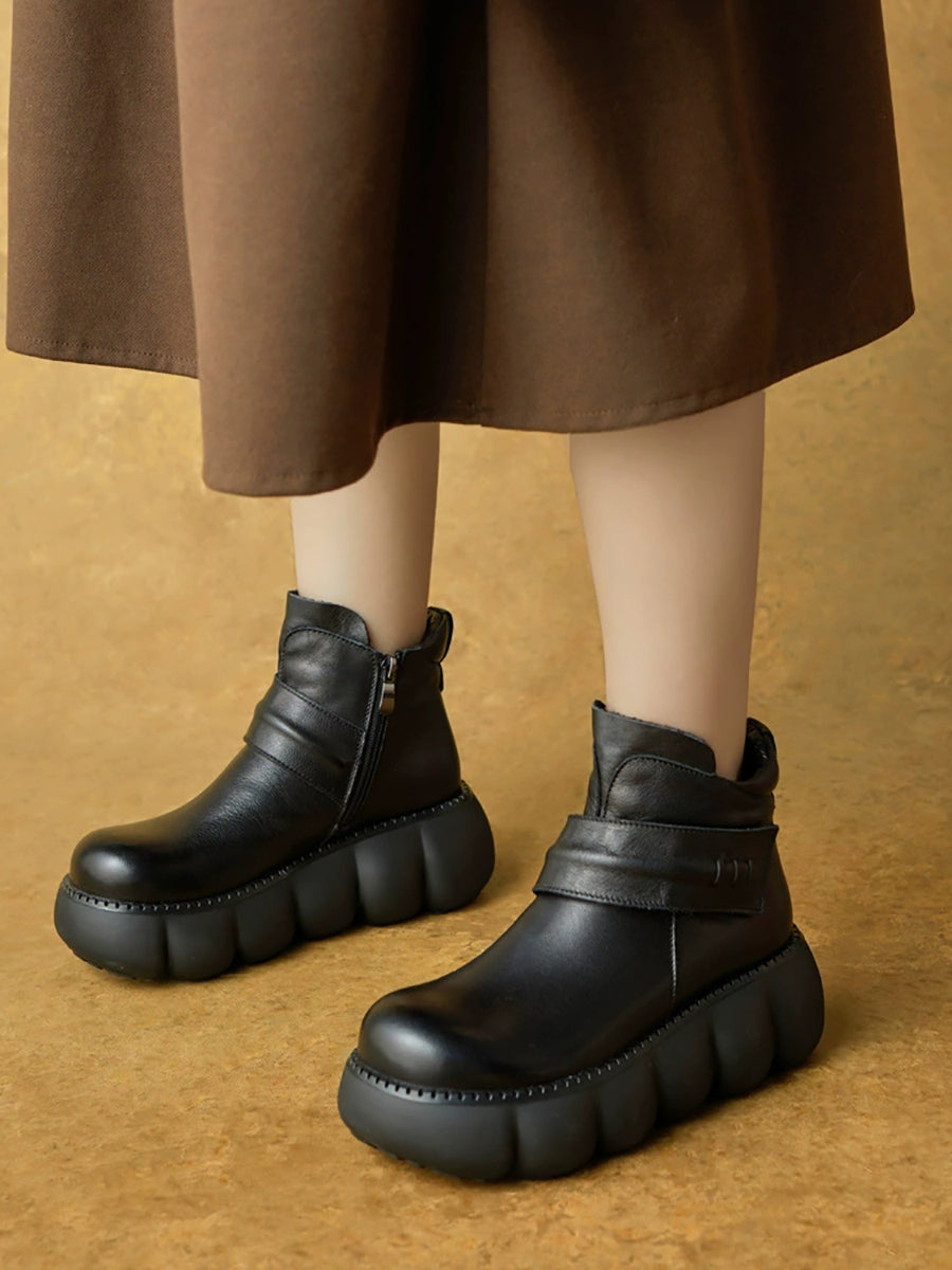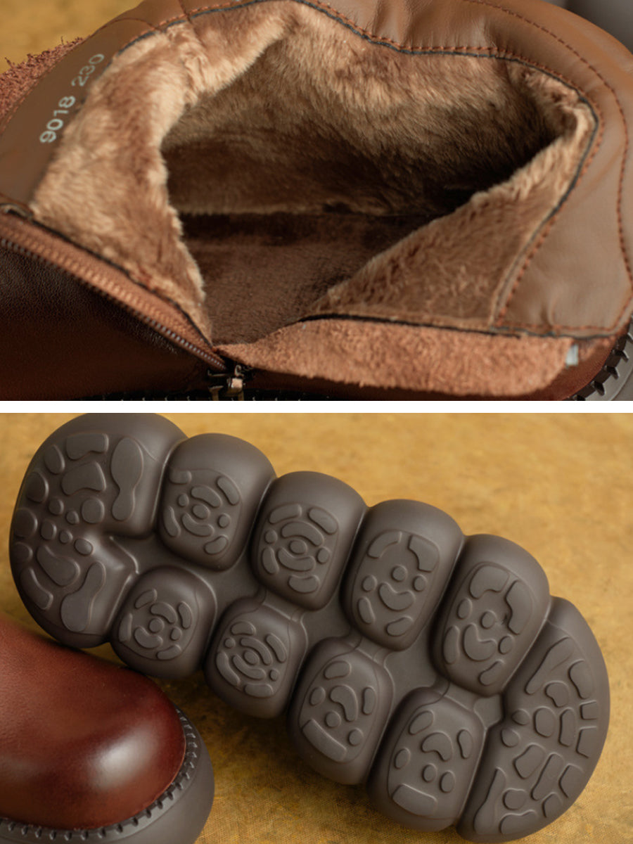 Stivali invernali da donna in vera pelle con fodera in pile e plateau