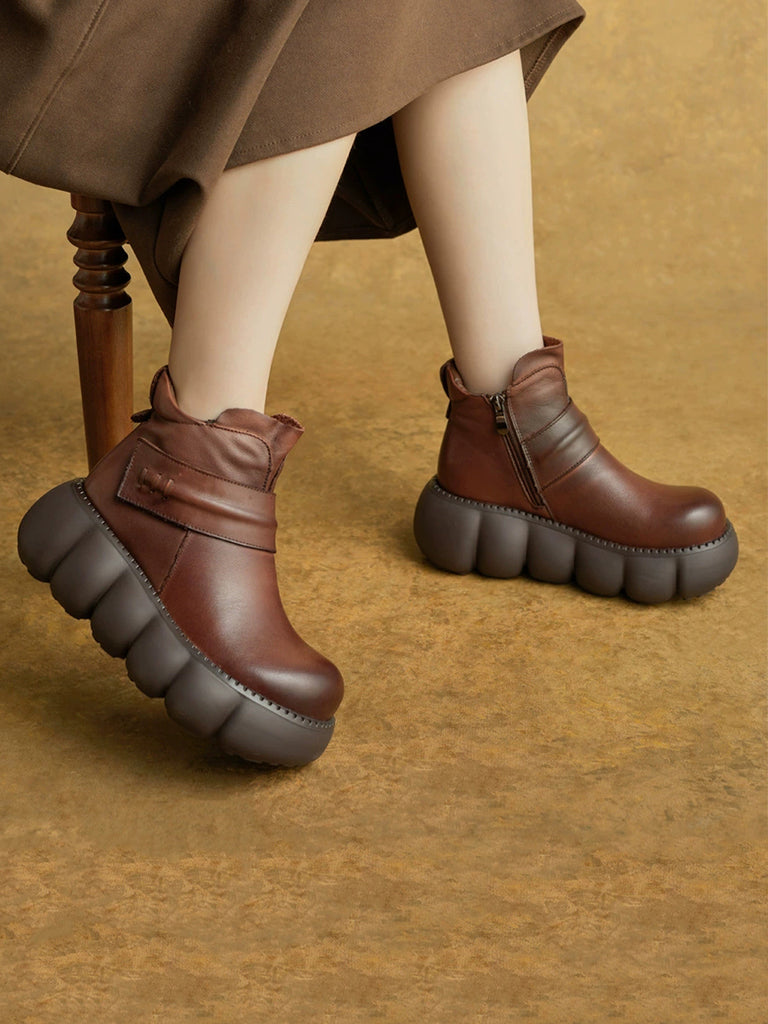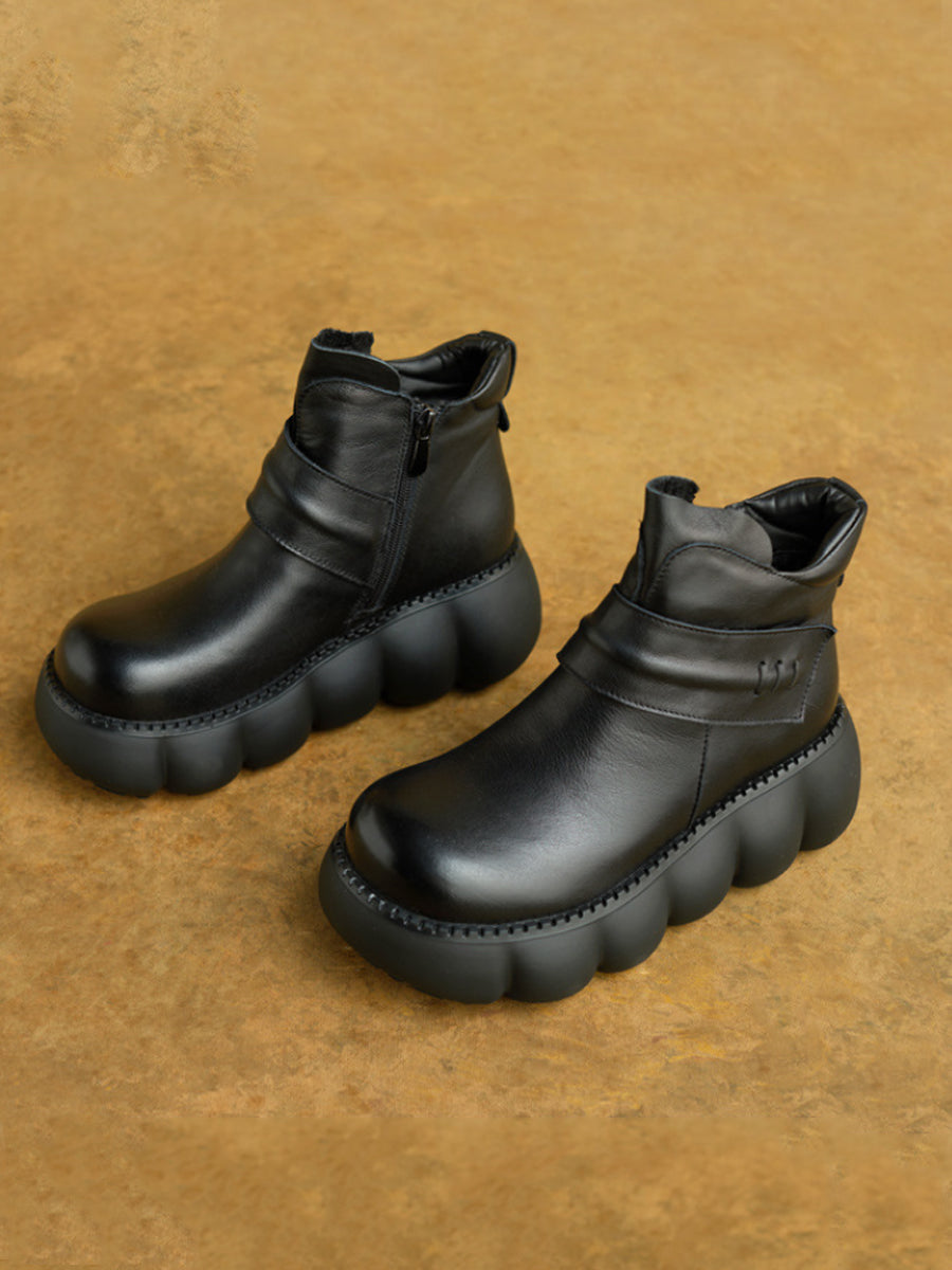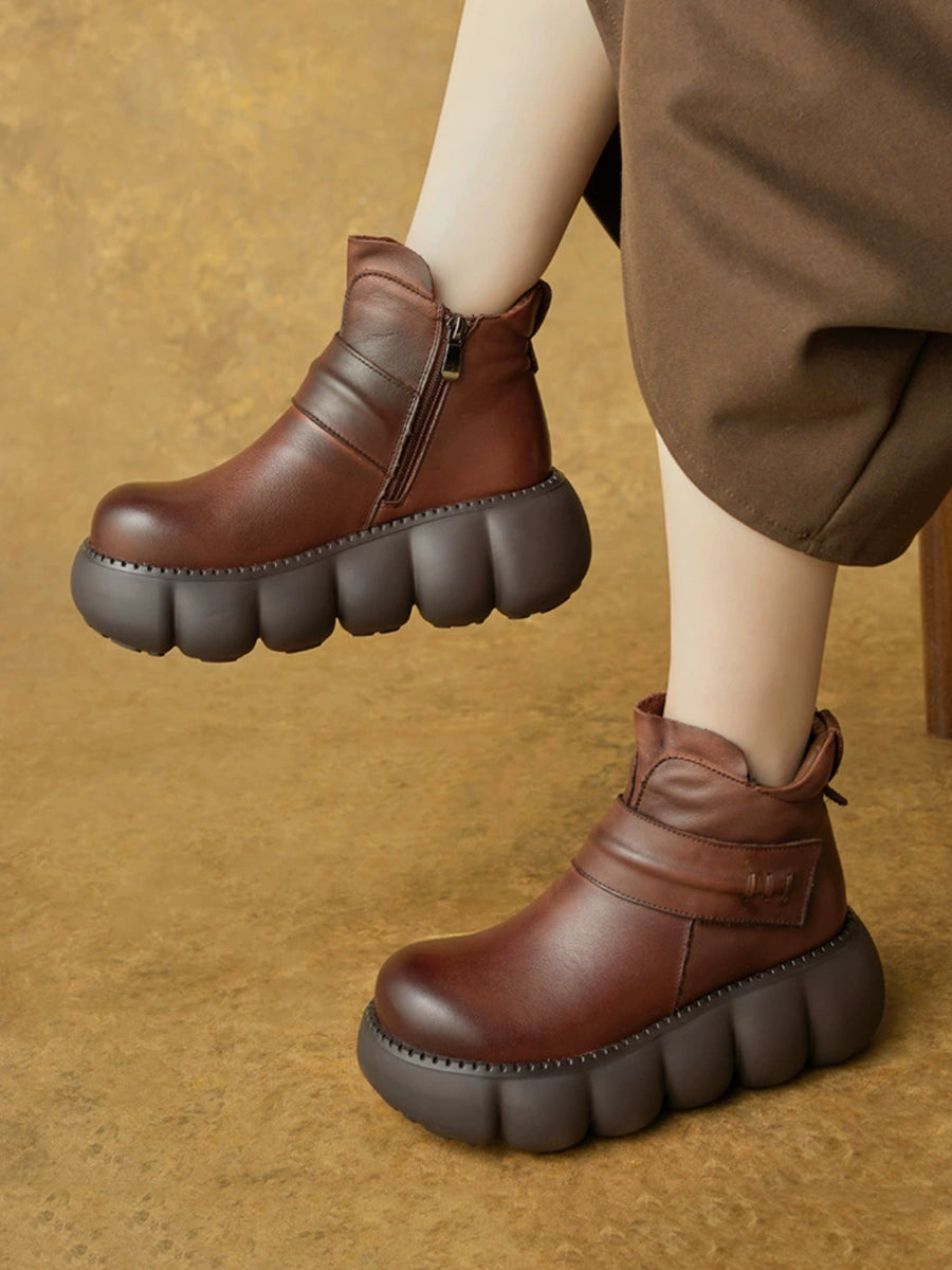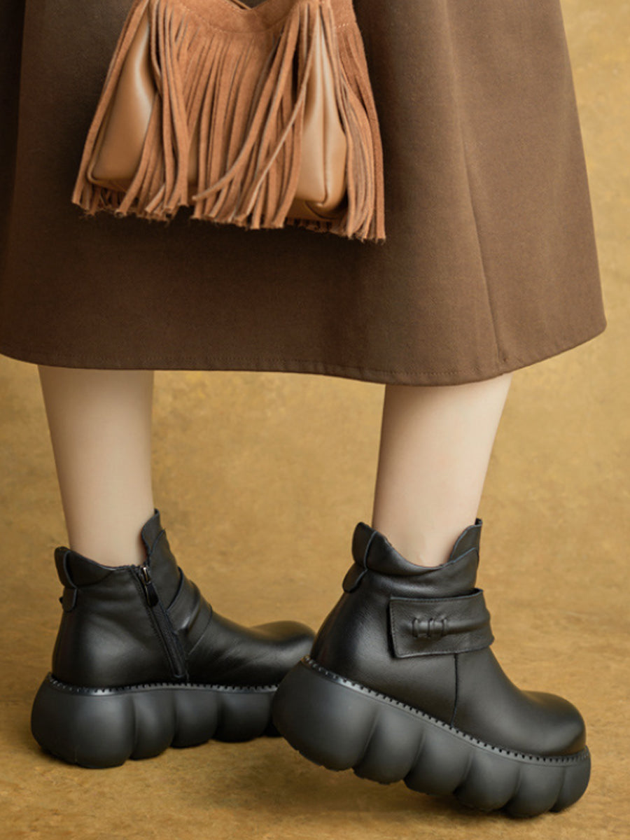 Stivali invernali da donna in vera pelle con fodera in pile e plateau