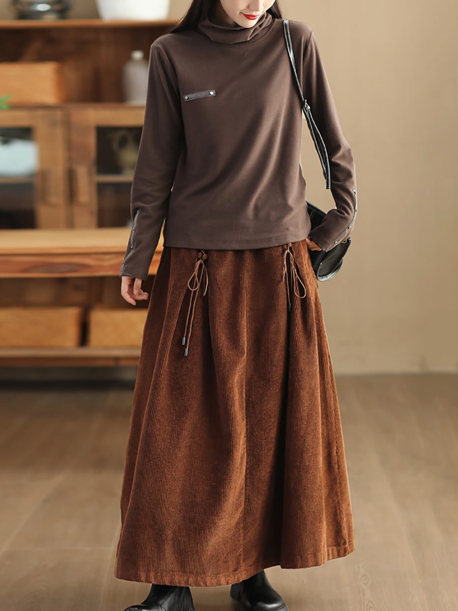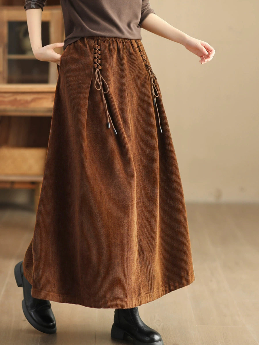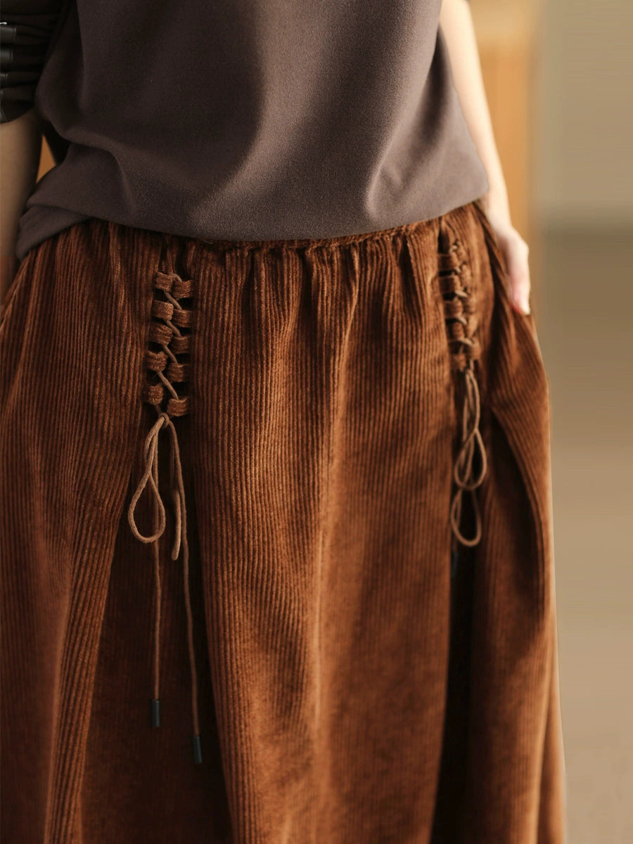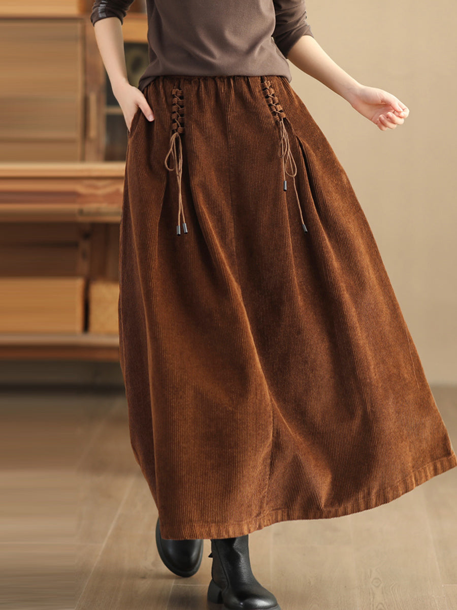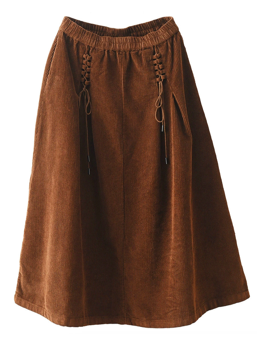 Gonna a trapezio in velluto a coste con cinturino retrò autunnale da donna