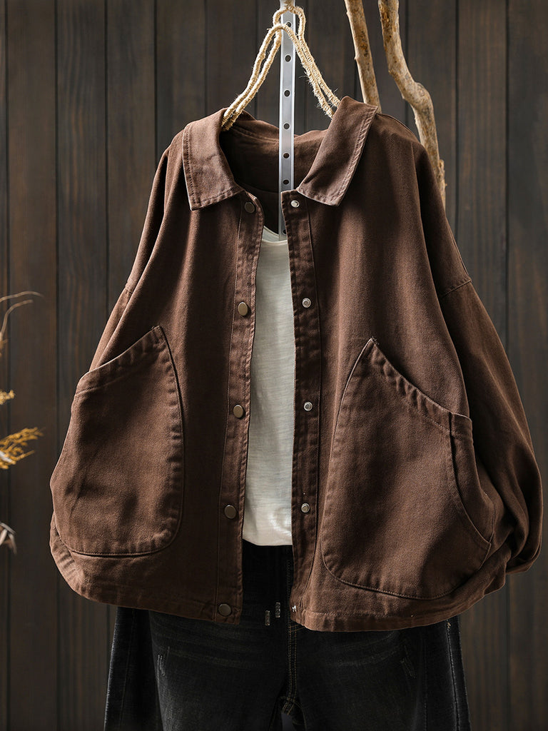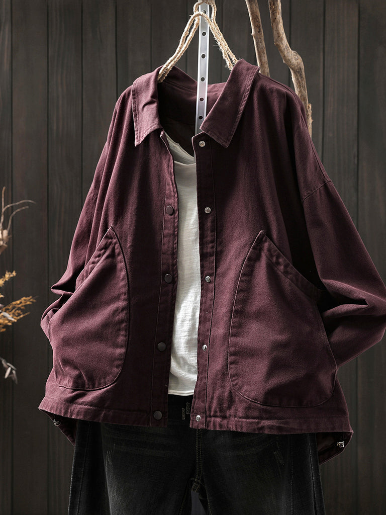 Cappotto camicia da donna in puro cotone con colletto rovesciato, 100%, colore puro