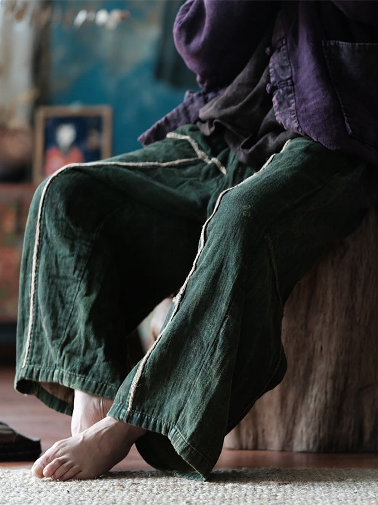 Pantaloni da donna estivi retrò in cotone a gamba larga con giunture