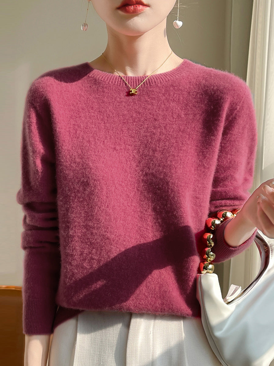 Maglione girocollo casual da donna in tinta unita autunnale