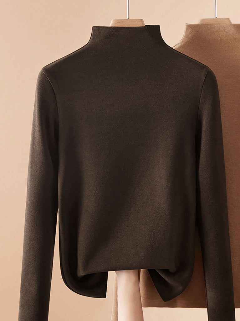 Blusa a collo alto in cashmere color puro da donna autunnale