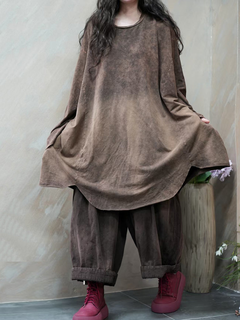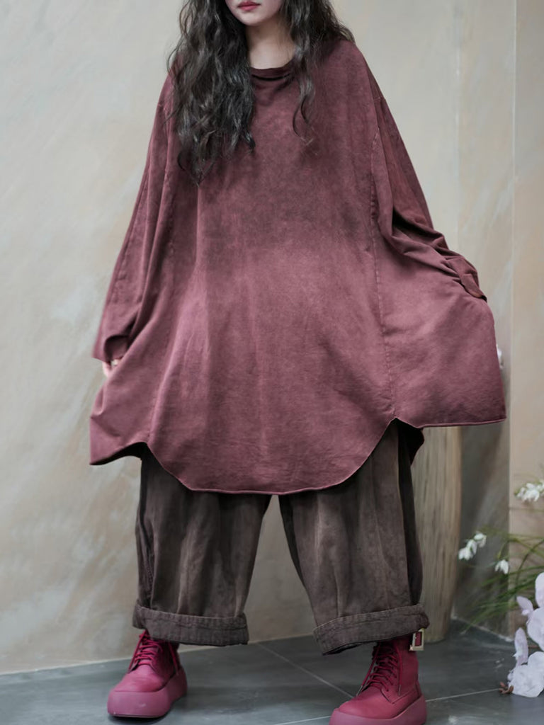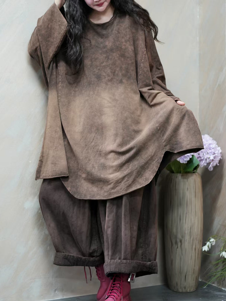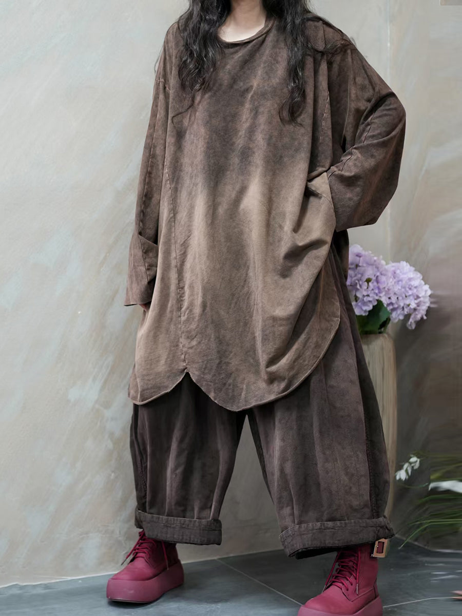 Camicetta da donna in cotone 100% con scollo a V e stampa tie-dye retrò autunnale