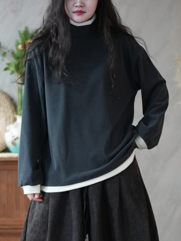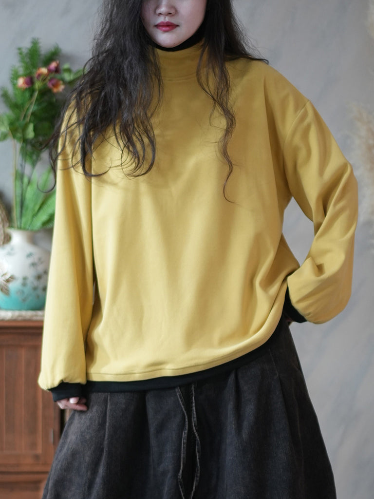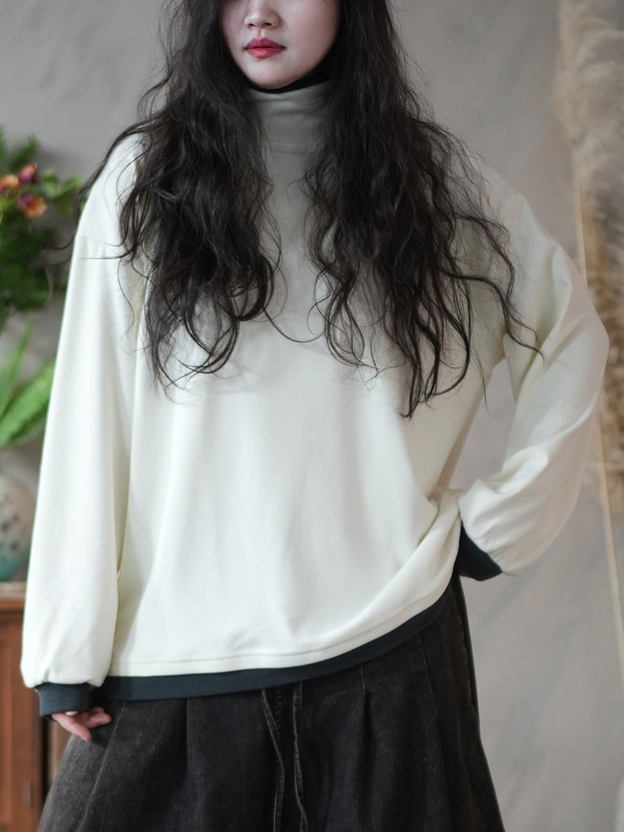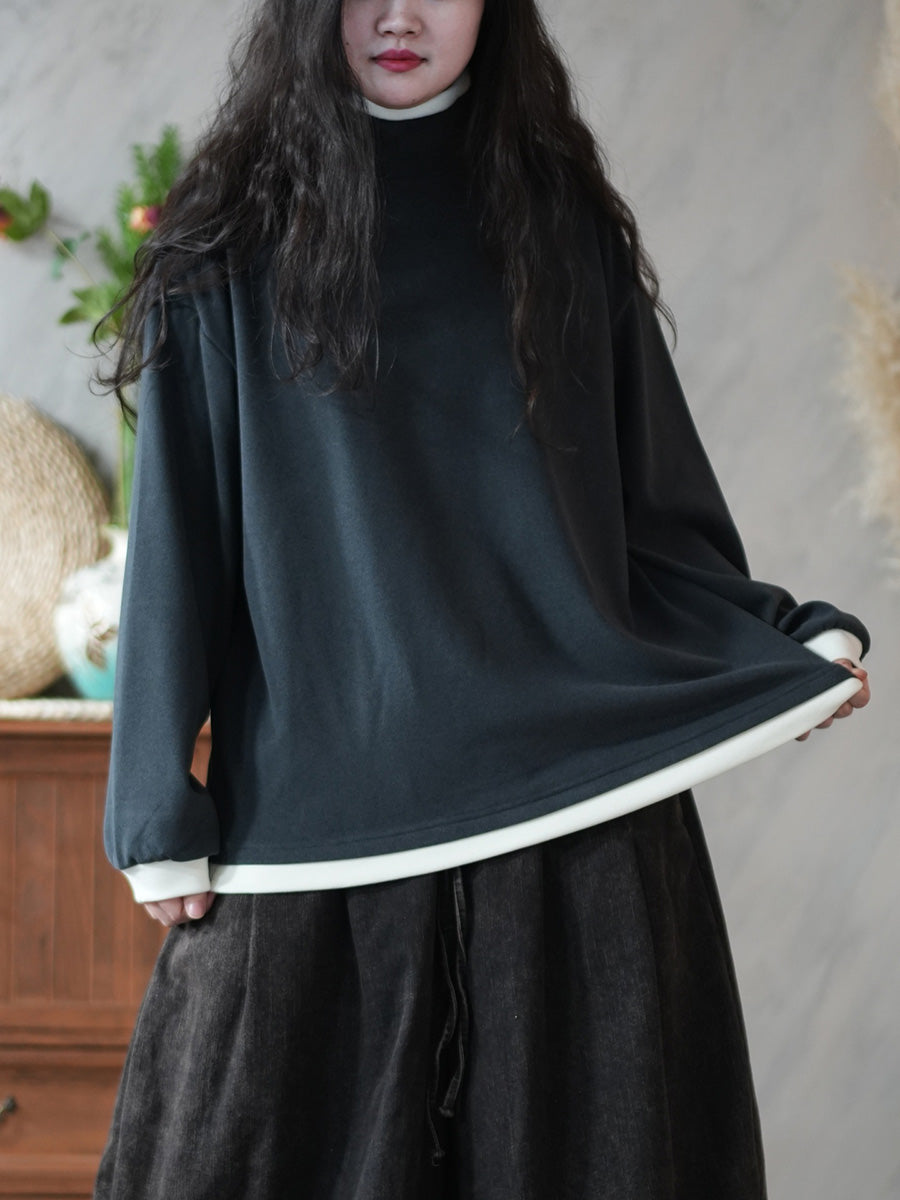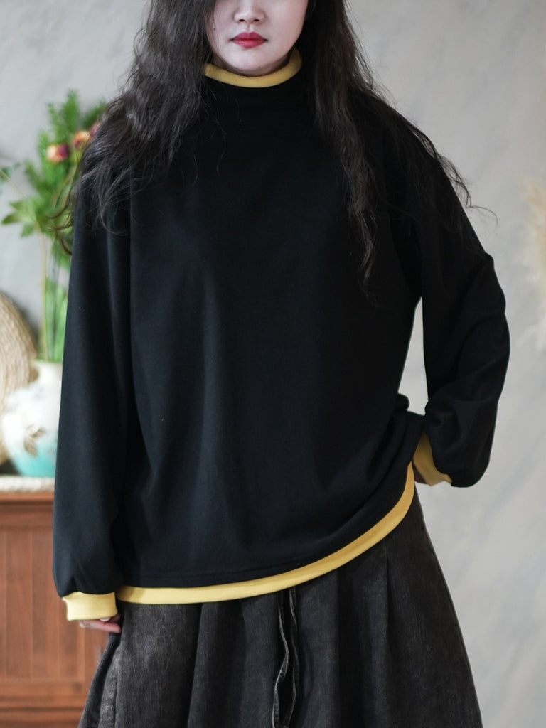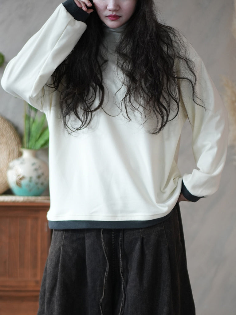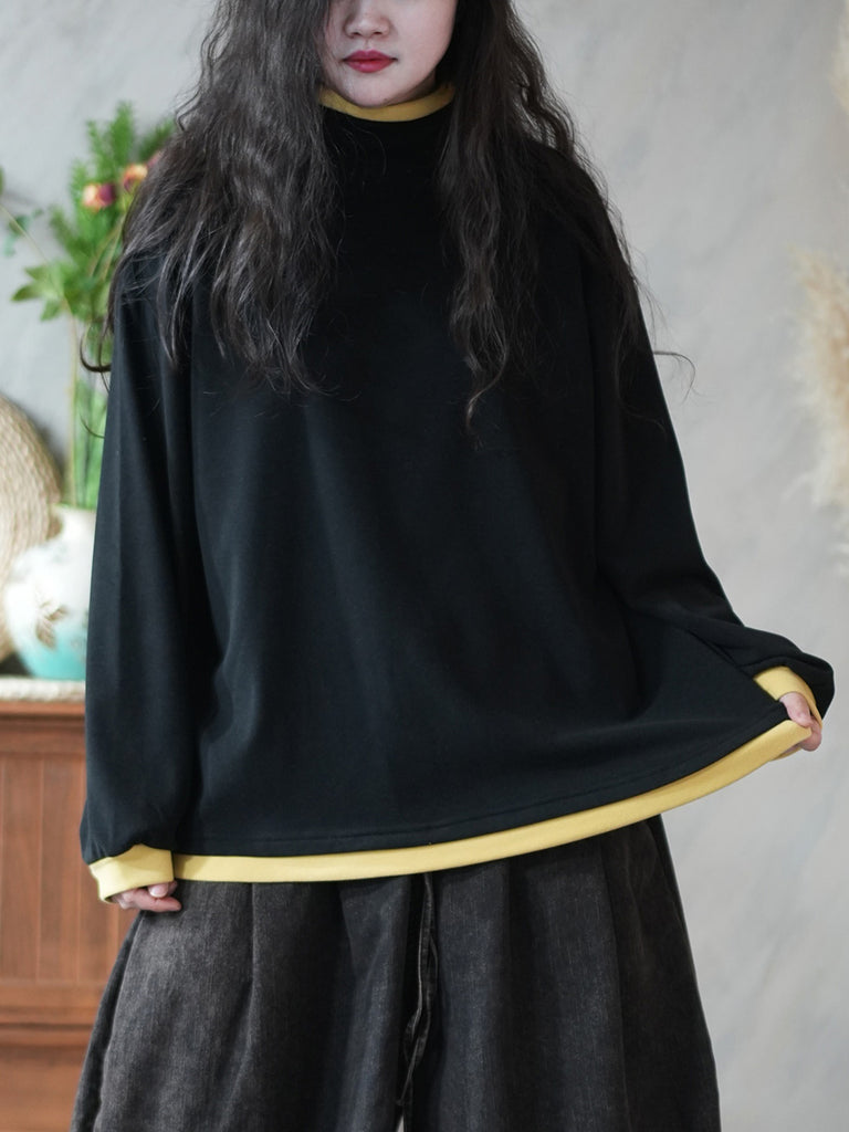 Blusa a collo alto invernale da donna in 100% cotone con motivo color block