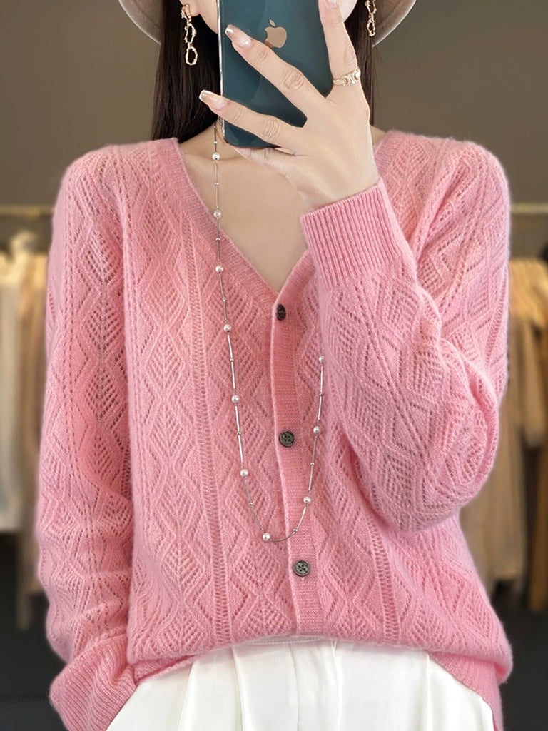 Maglione con scollo a V casual autunnale da donna, colore puro