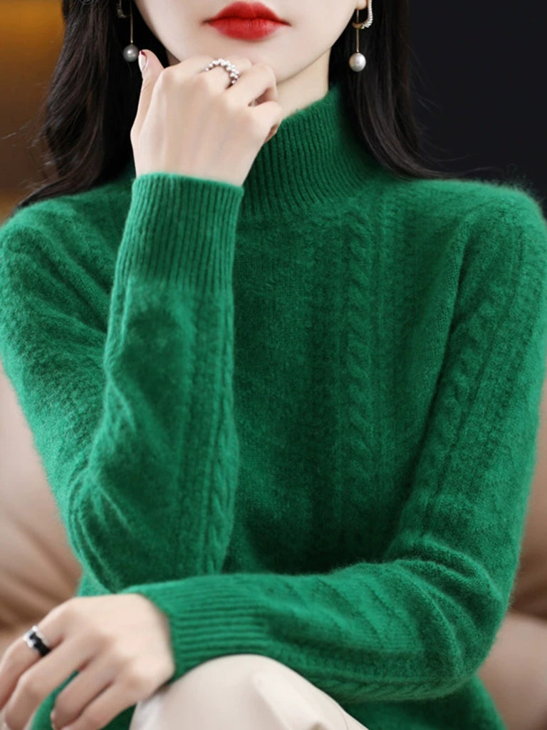 Maglione a collo alto in lana color autunnali da donna