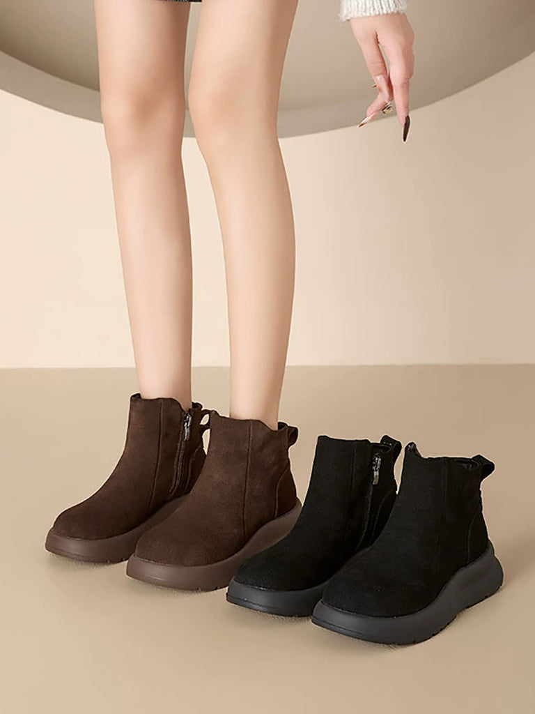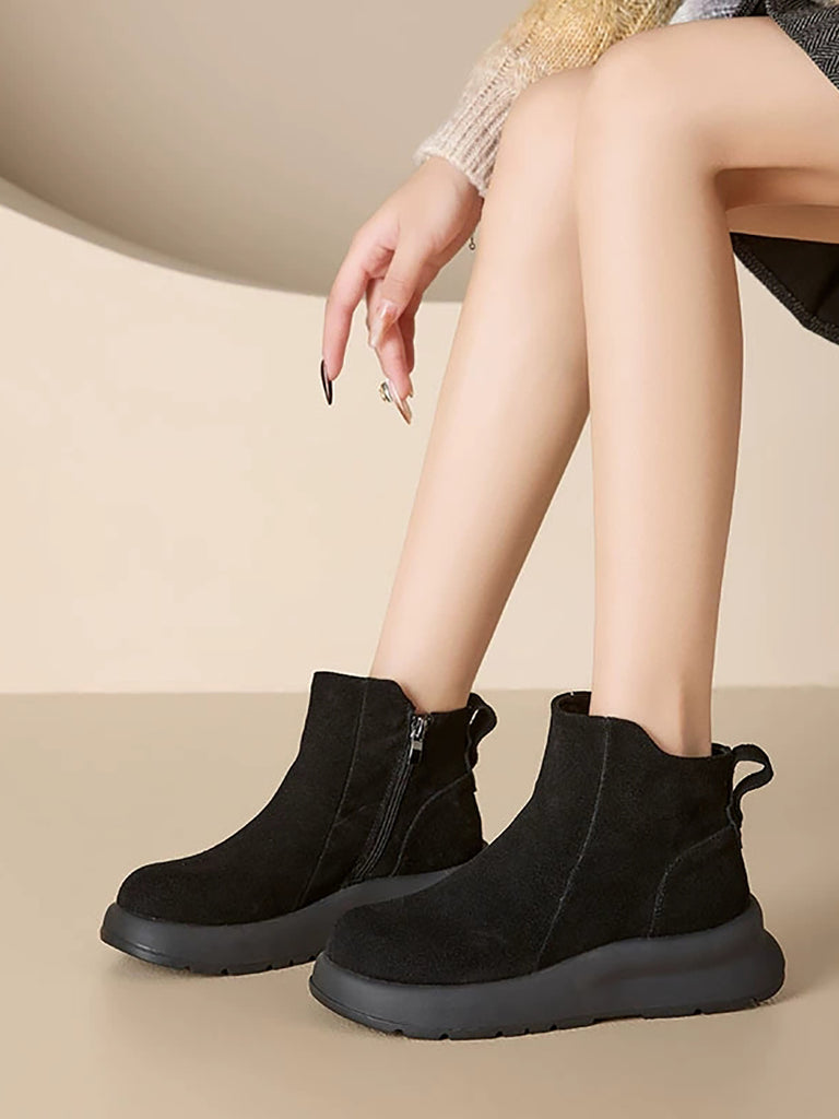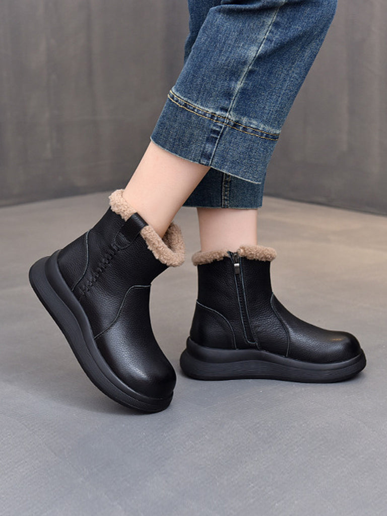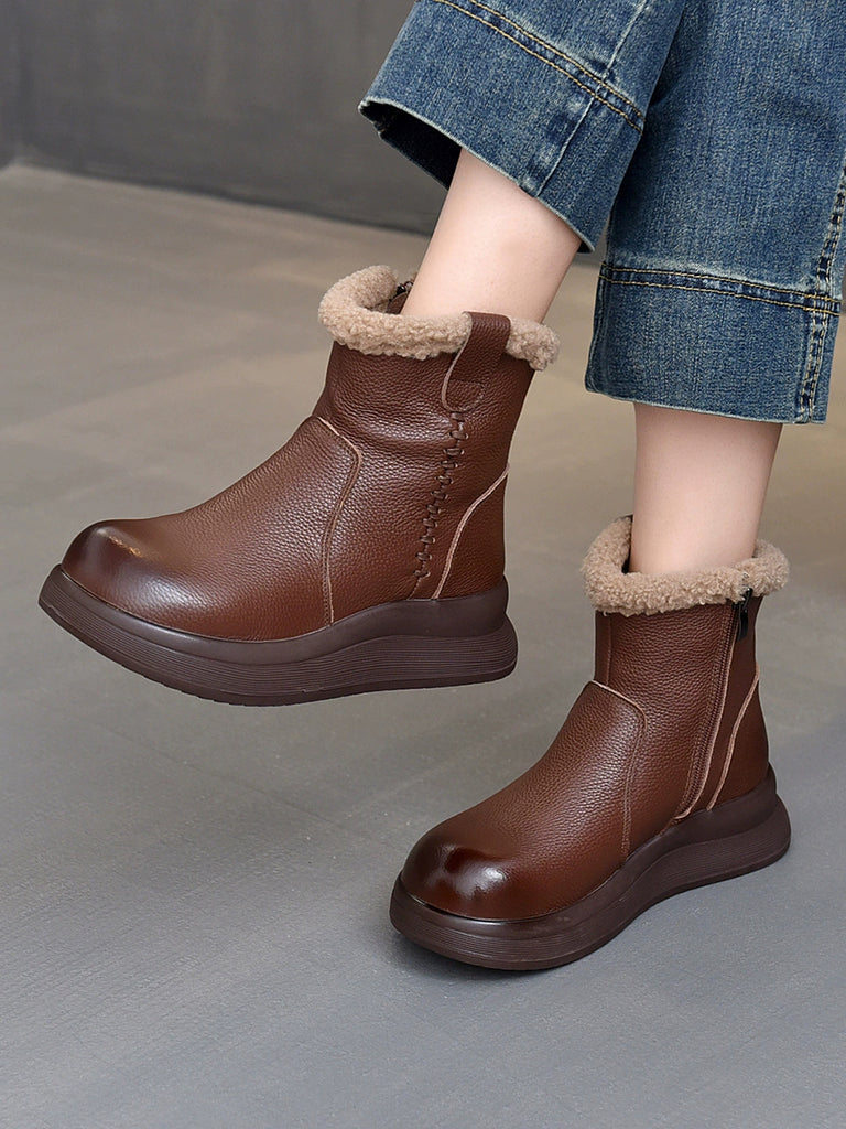 Stivali da donna vintage in vera pelle con fodera in pile e plateau