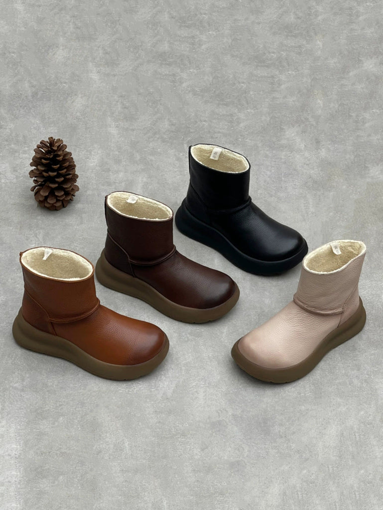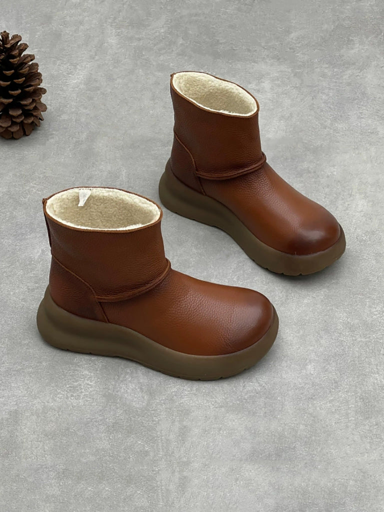 Stivaletti da donna vintage in vera pelle foderati in pile
